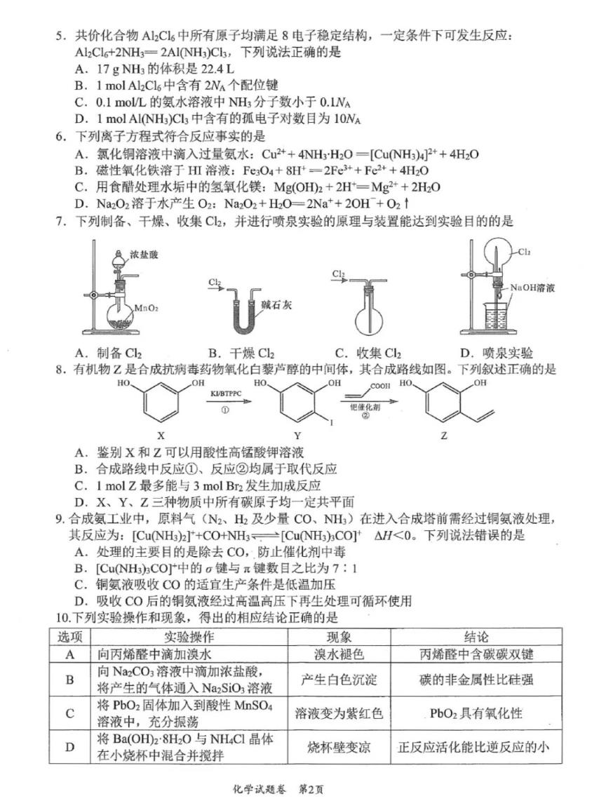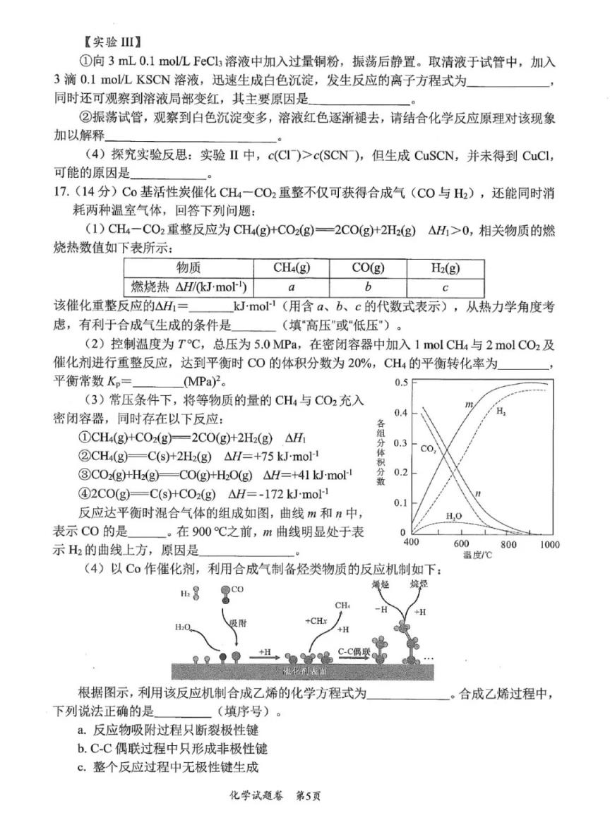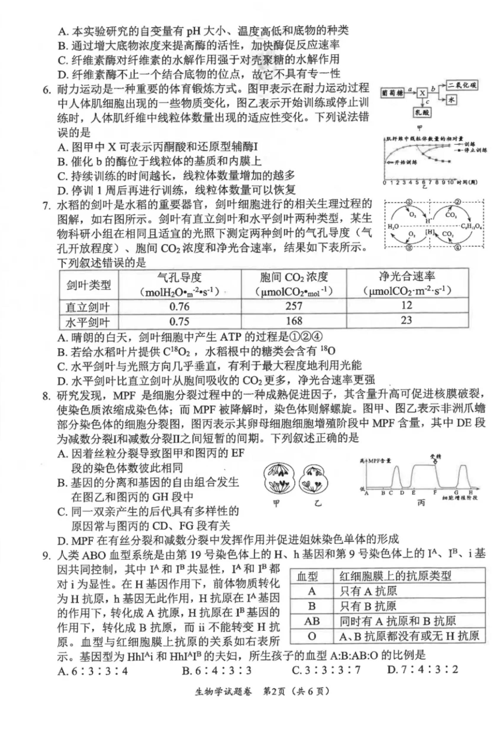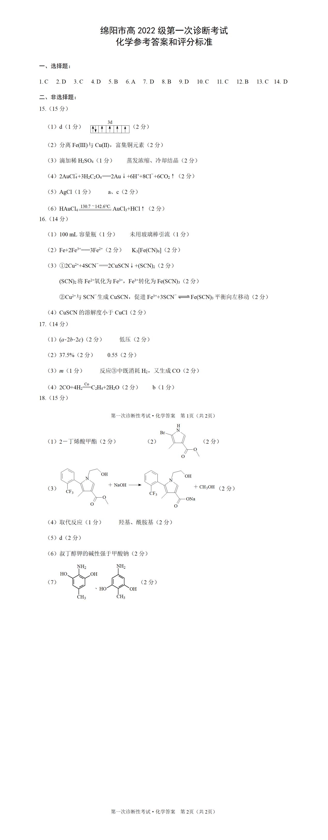 五、2025綿陽市一診考試答案(物理、化學、生物)