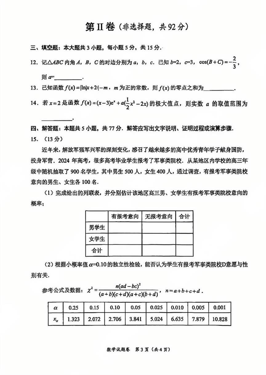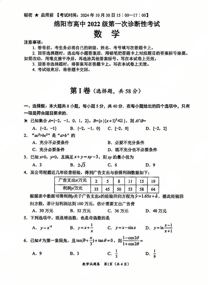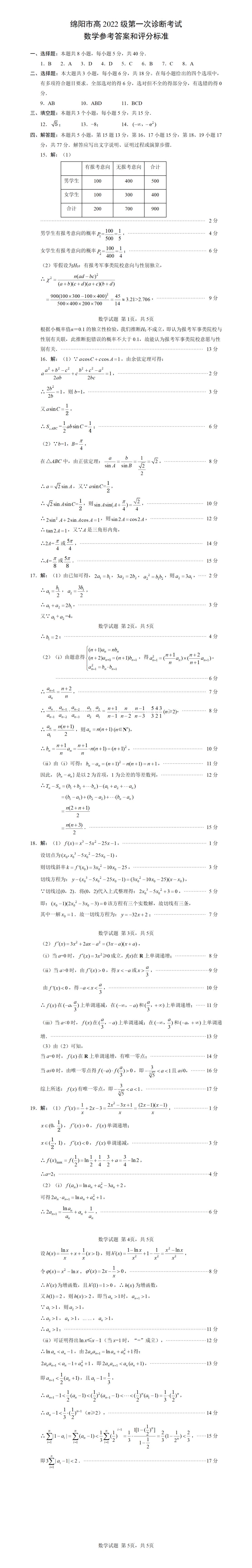 二、2025綿陽市一診考試數(shù)學答案