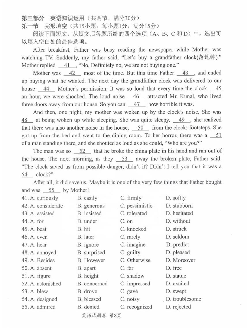 完形填空:共20小題,每小題1.5分,總計30分。
