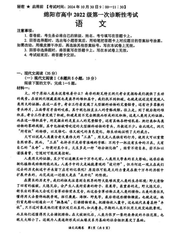 一、2025綿陽市一診考試語文答案