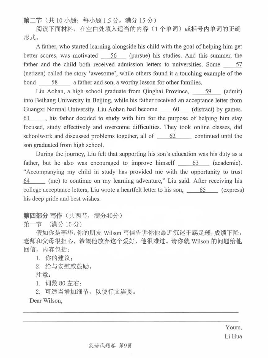 語法填空或短文改錯:一般為10小題,語法填空每小題1.5分,共15分;短文改錯共10分。