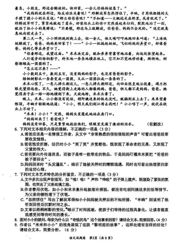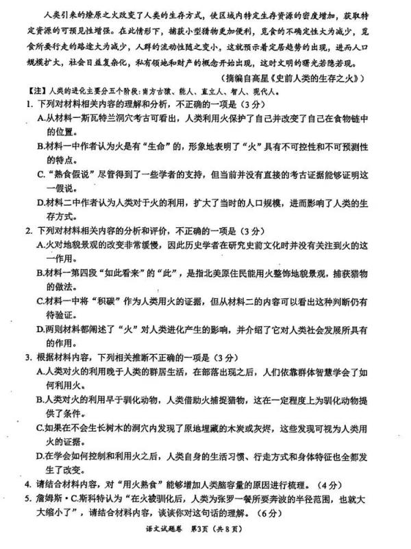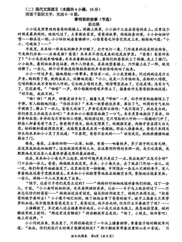 現(xiàn)代文閱讀主觀題:23分左右。