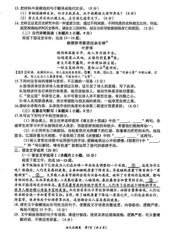 名句默寫:7分。