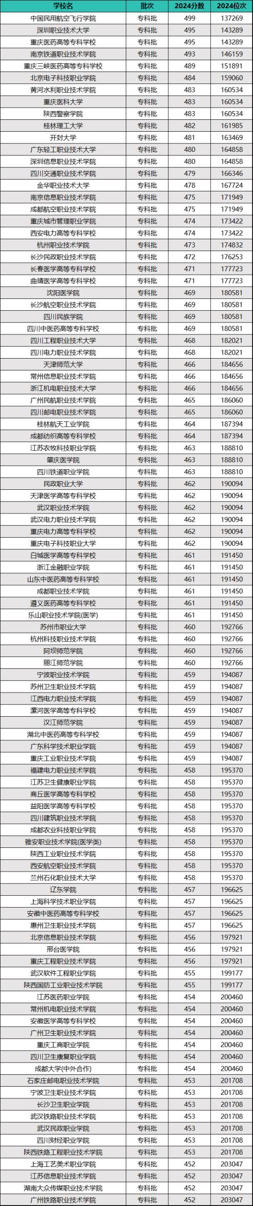 而錄取分最高的三所公辦大專院校是中國(guó)民用航空飛行學(xué)院499分、深圳職業(yè)技術(shù)大學(xué)495分、重慶醫(yī)藥高等??茖W(xué)校495分。