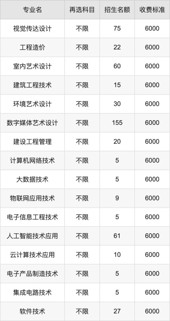 江西工業(yè)職業(yè)技術(shù)學(xué)院在歷史組高職專科招生的各個專業(yè),每年的學(xué)費是6000元。招生人數(shù)最多的專業(yè)是數(shù)字媒體藝術(shù)設(shè)計,2024年招155人,學(xué)費是6000元。