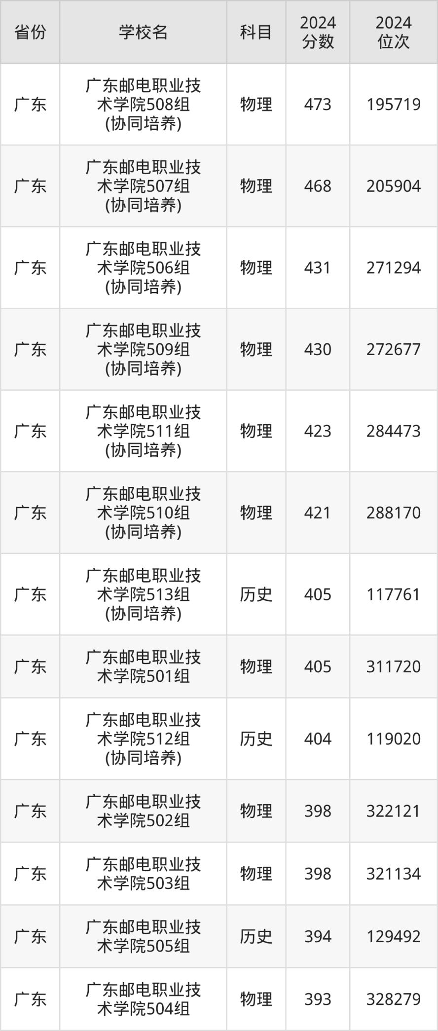 2024年廣東郵電職業(yè)技術學院在廣東省內錄取最低分數(shù)線是393分,錄取最低的是物理類504組;錄取分數(shù)線最高是473分,對應的是物理類508組(協(xié)同培養(yǎng))。