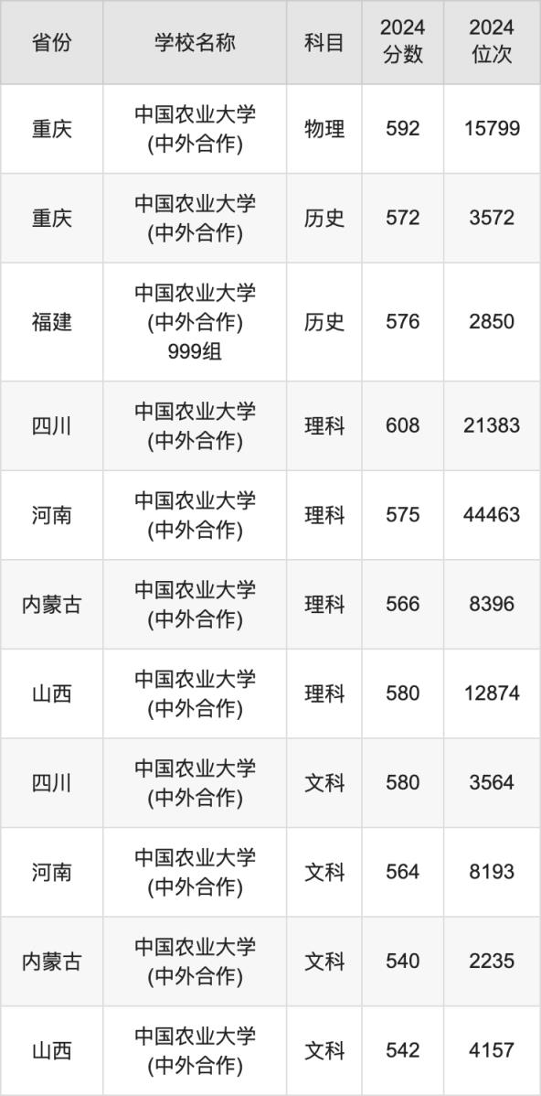 一、2024中國(guó)農(nóng)業(yè)大學(xué)(中外合作)錄取分?jǐn)?shù)線