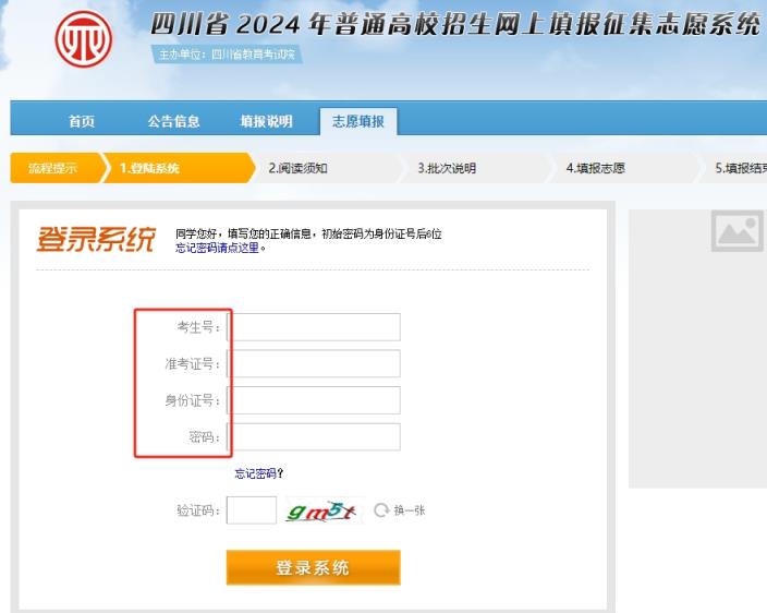 3、進入登錄界面之后,輸入對應(yīng)的準考證號、考生號、身份證號、密碼等必要信息后即可登錄系統(tǒng)進行征集志愿的填報。