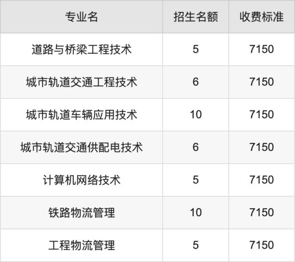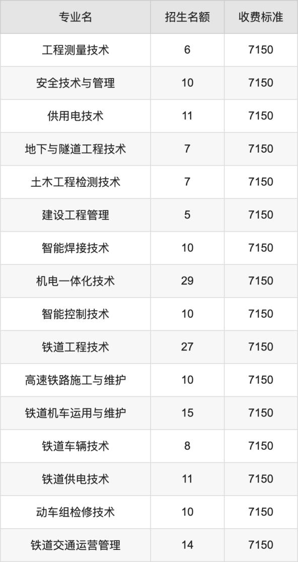 陜西鐵路工程職業(yè)技術(shù)學(xué)院理科高職??婆灿?2個招生專業(yè),各專業(yè)每年的學(xué)費是7150元。