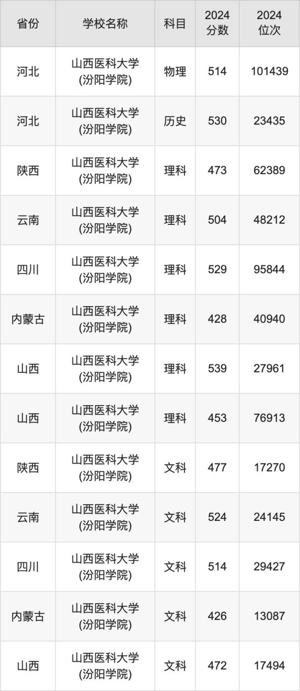 一、2024山西醫(yī)科大學(汾陽學院)錄取分數(shù)線