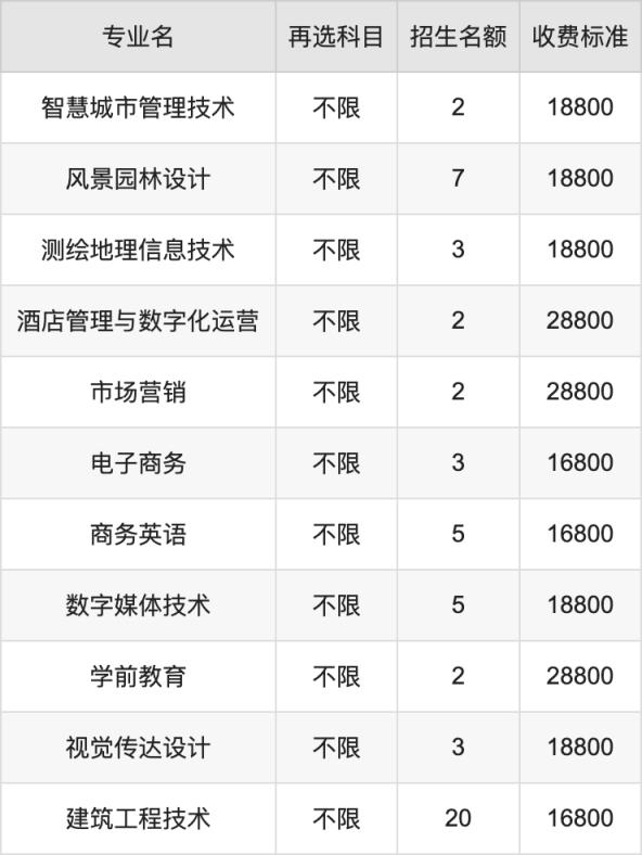| 專科高職批 | 歷史 | 酒店管理與數(shù)字化運(yùn)營 | 2 |