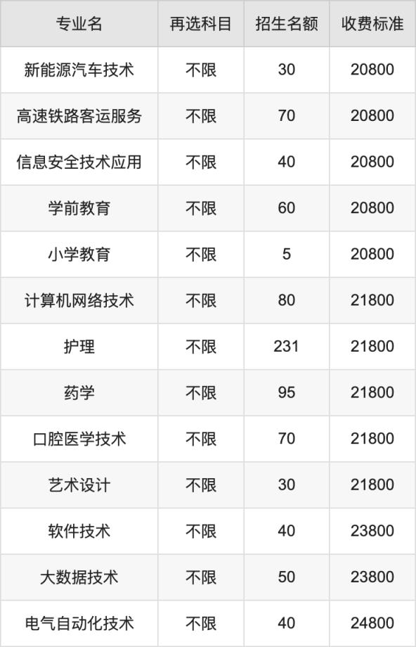 湖南電子科技職業(yè)學(xué)院在歷史組高職專科批招生的各個(gè)專業(yè),每年的學(xué)費(fèi)是18300元-24800元。招生人數(shù)最多的專業(yè)是護(hù)理,2024年招231人,學(xué)費(fèi)是21800元。