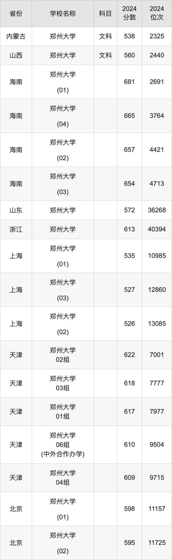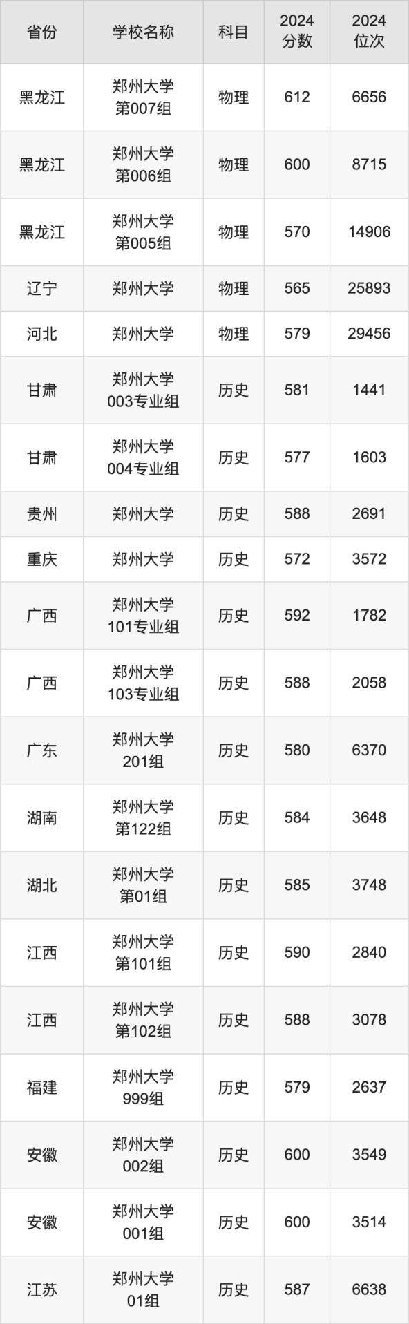 二、鄭州大學各專業(yè)錄取分數(shù)線
