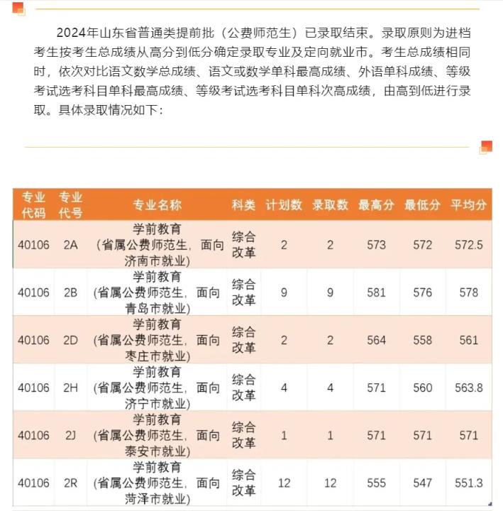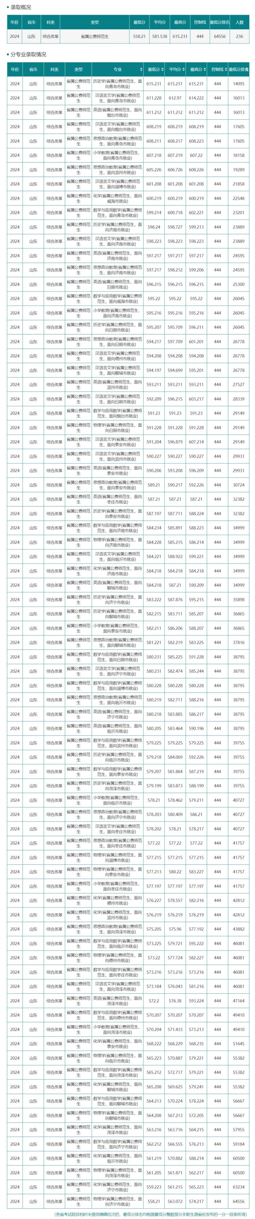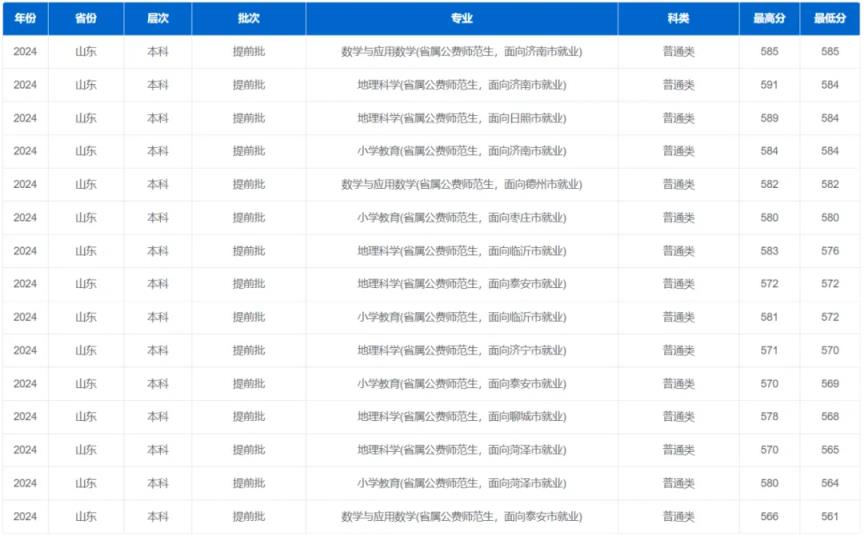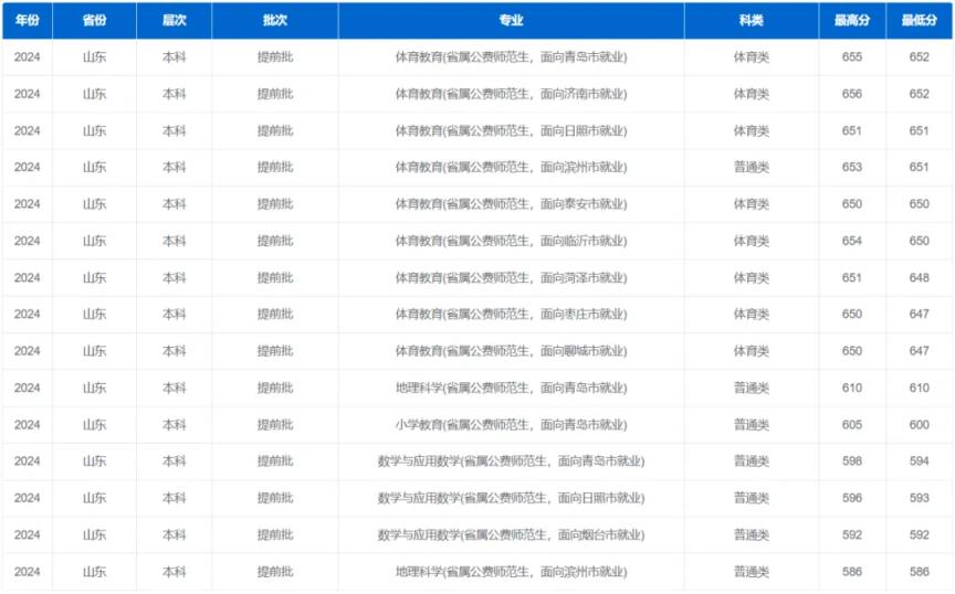2024年山東省屬公費師范生主要由濟南大學、青島大學、山東師范大學、臨沂大學、聊城大學、魯東大學、齊魯師范學院、曲阜師范大學這8所院校承擔培養(yǎng)計劃,要求公費師范生畢業(yè)后須在定向的就業(yè)單位工作不少于6年,各校的錄取情況整理如下,考生可以參考查閱: