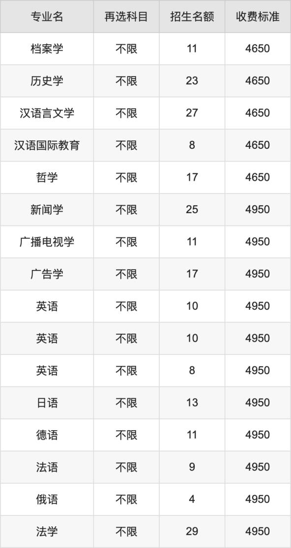 南昌大學(xué)在歷史組本科批招生的各個(gè)專業(yè),每年的學(xué)費(fèi)是4650元-14000元。招生人數(shù)最多的專業(yè)是工商管理,2024年招36人,學(xué)費(fèi)是4950元。