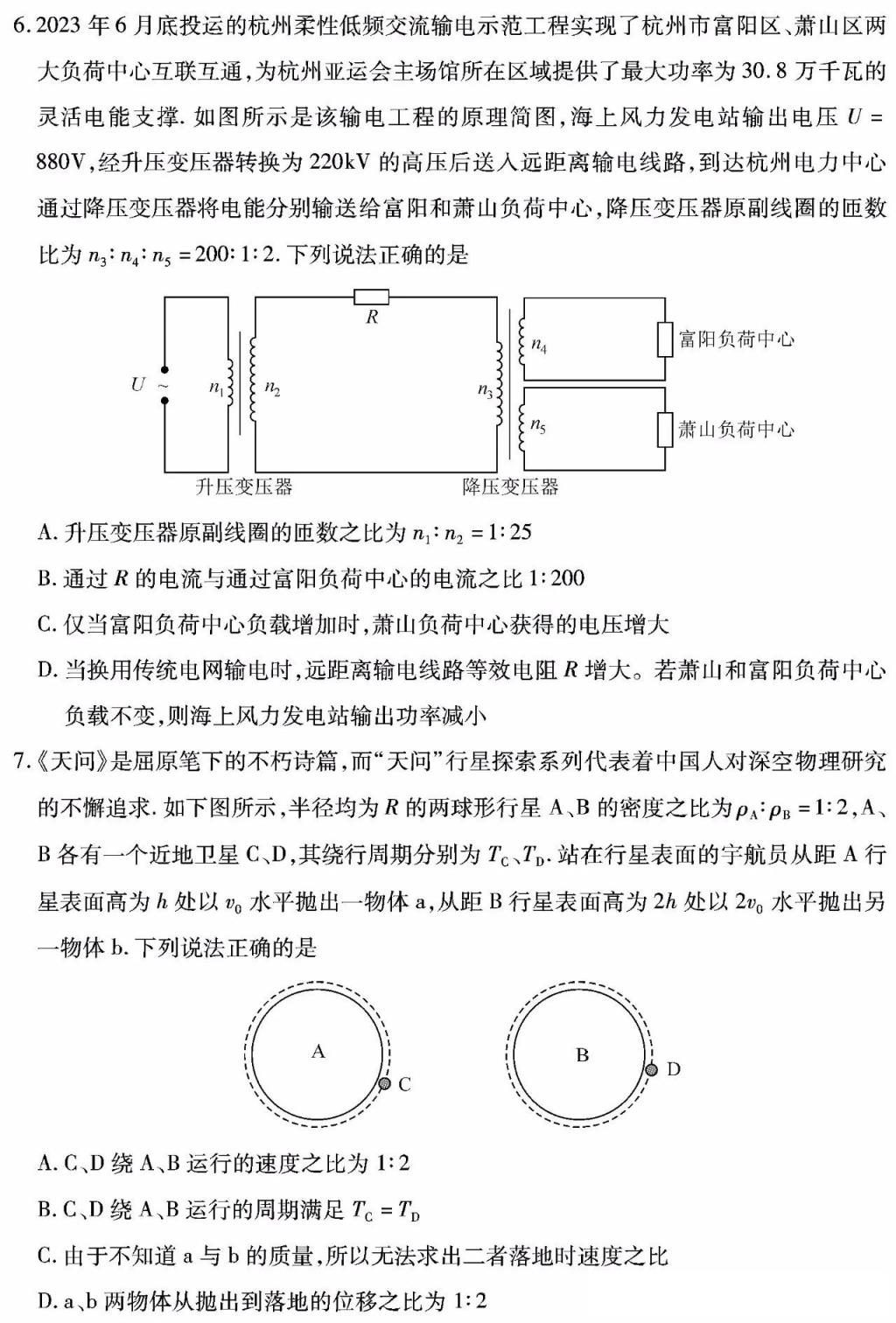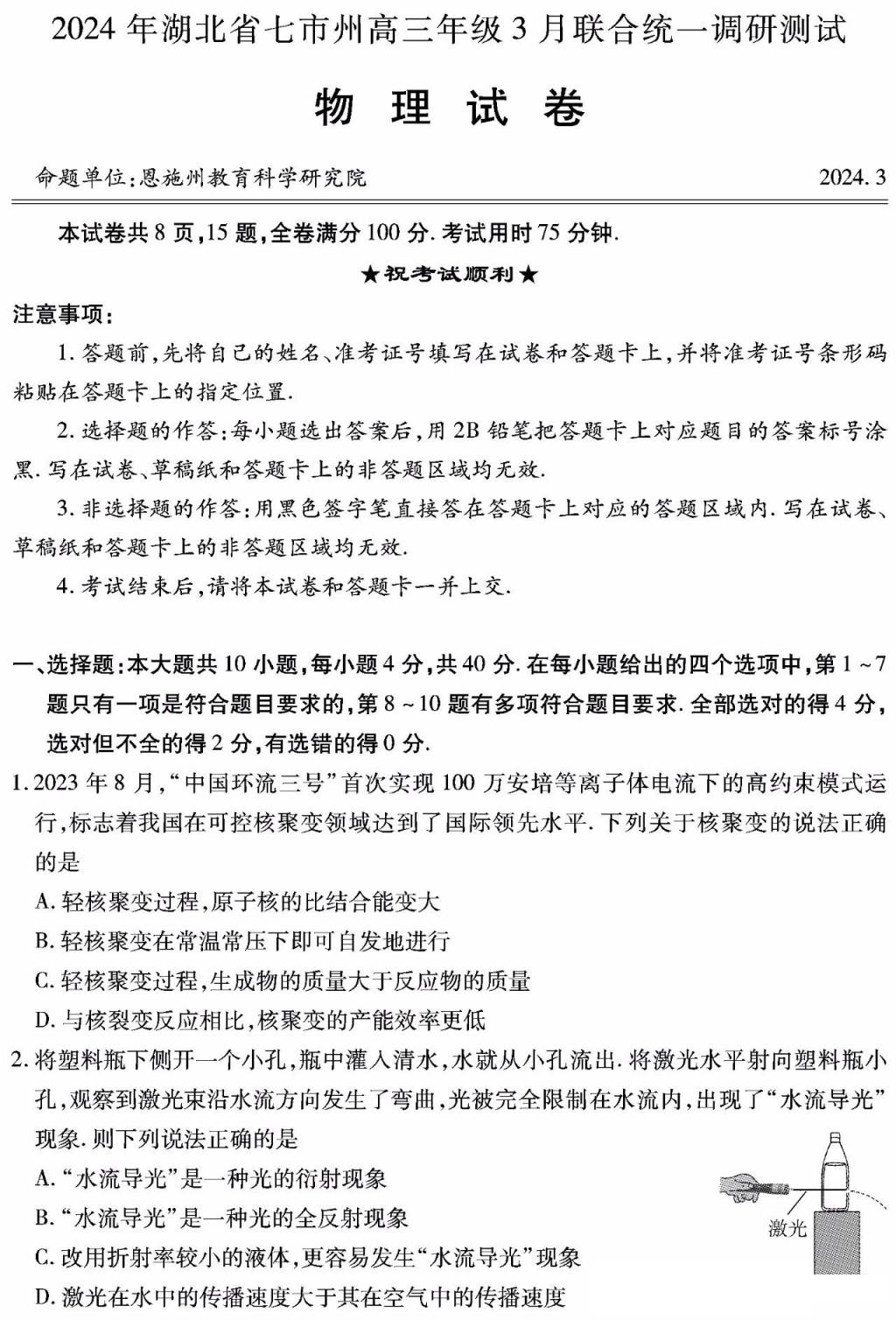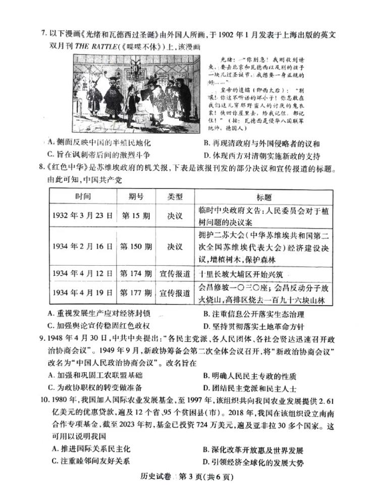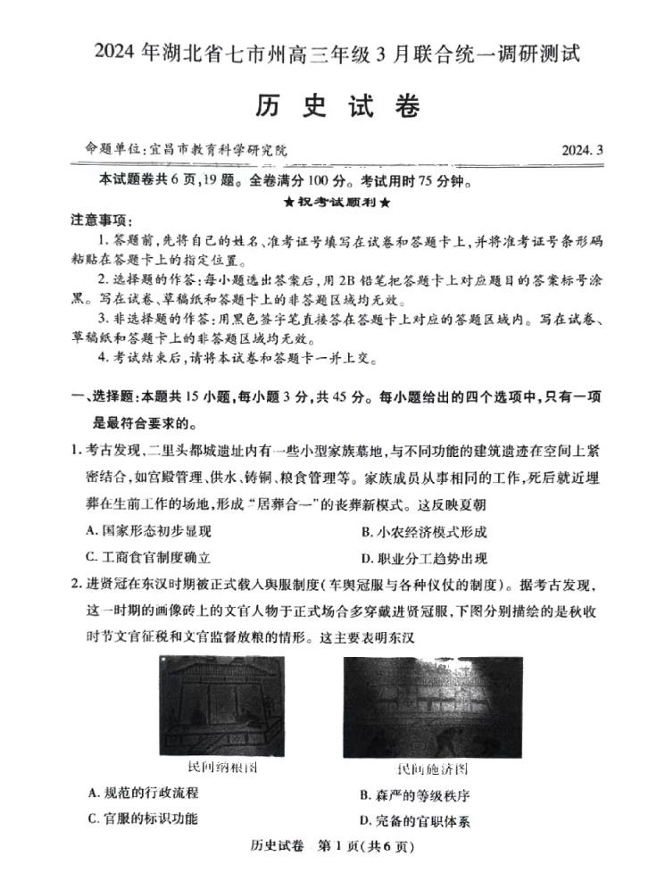 五、湖北省七市州聯(lián)考2024物理/歷史試題及答案解析