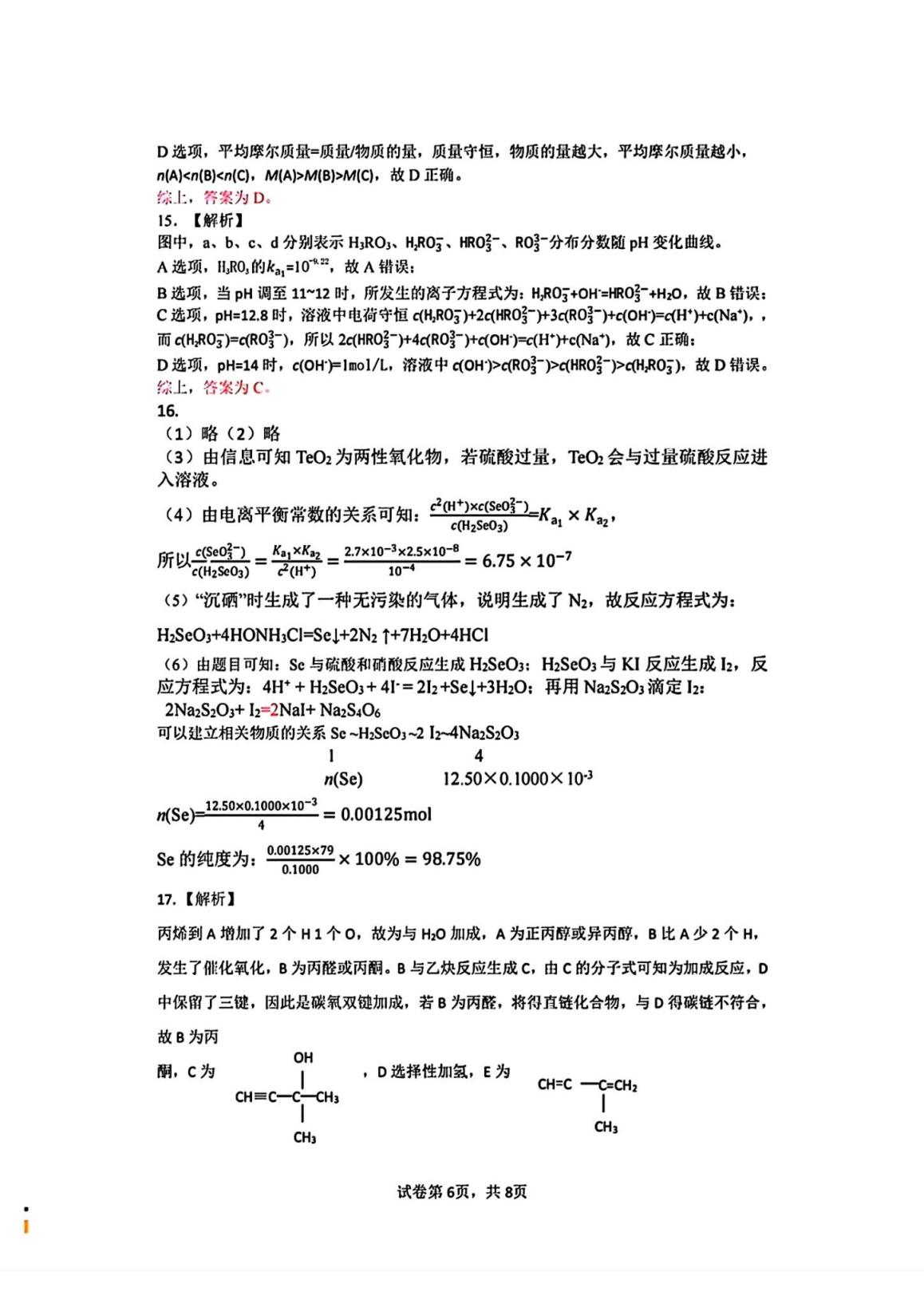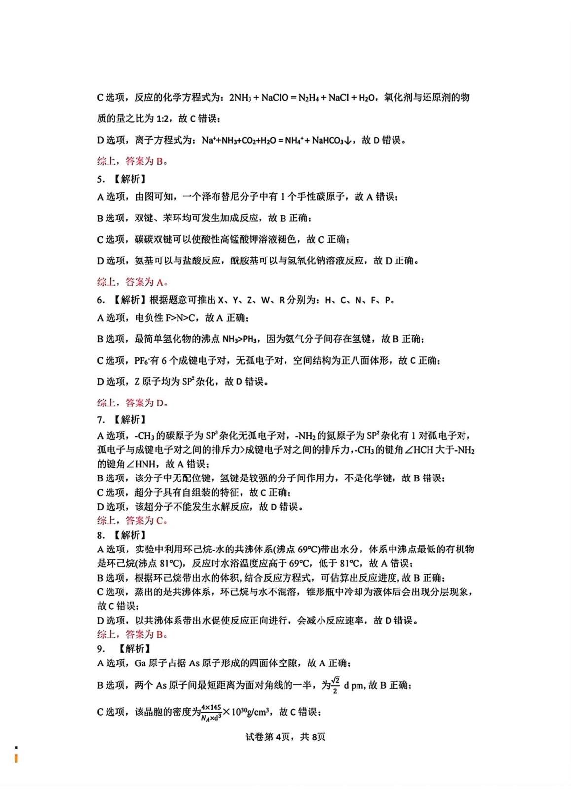 六、湖北省七市州聯(lián)考2024答案(四選二科目)