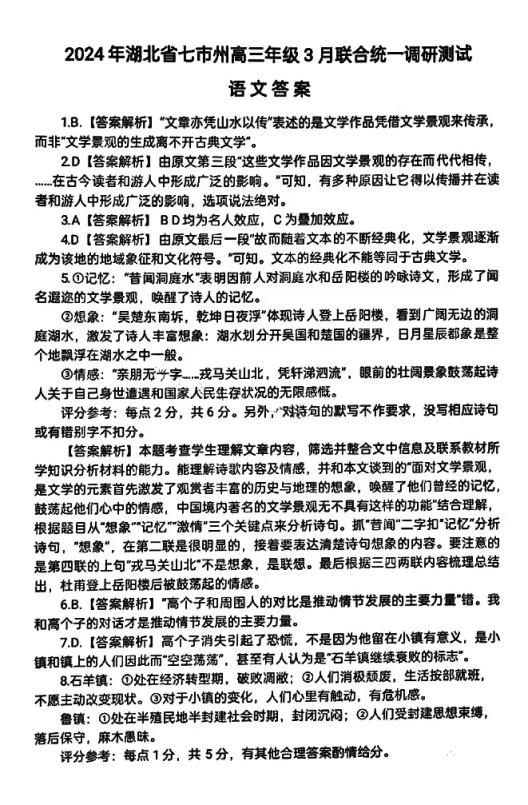 二、湖北省七市州聯(lián)考2024語文試題及答案解析