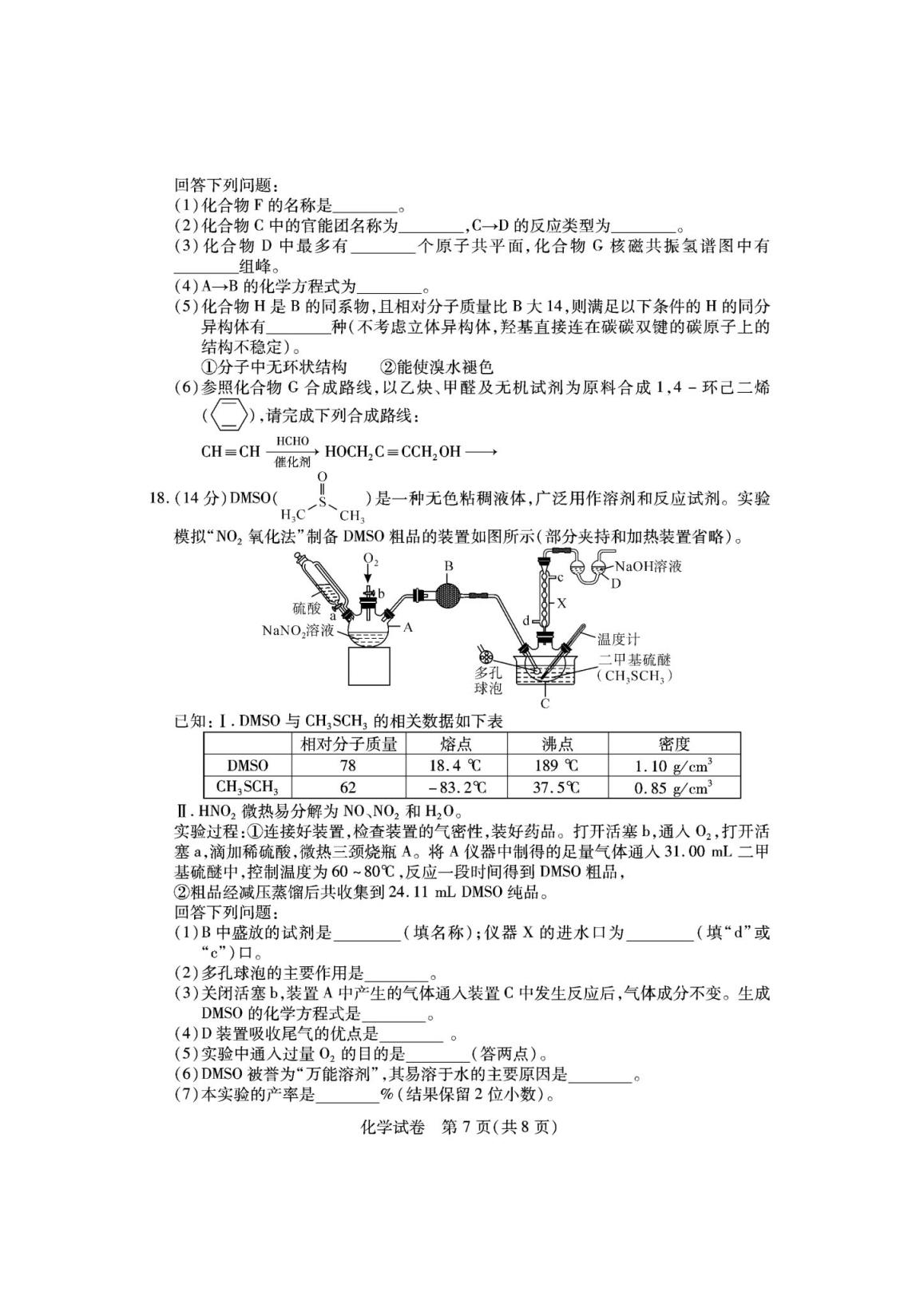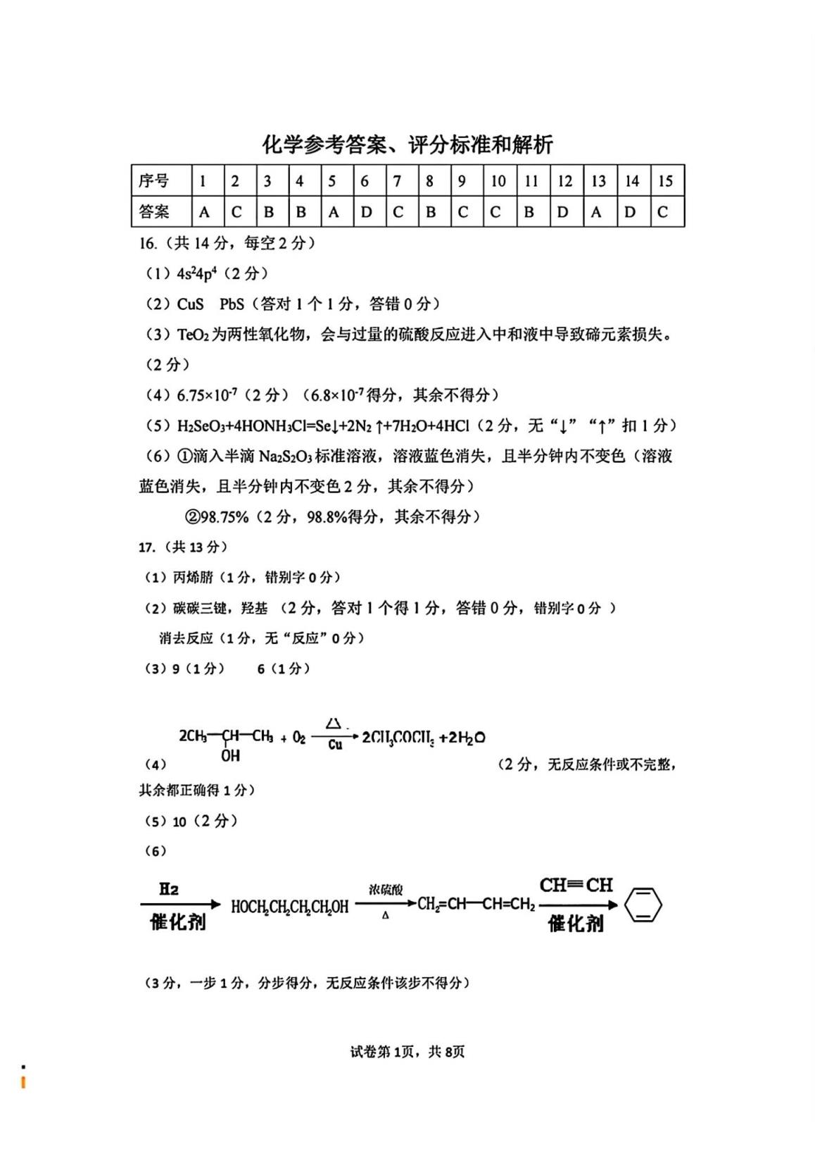 (1)湖北七市州聯(lián)考化學試卷及答案