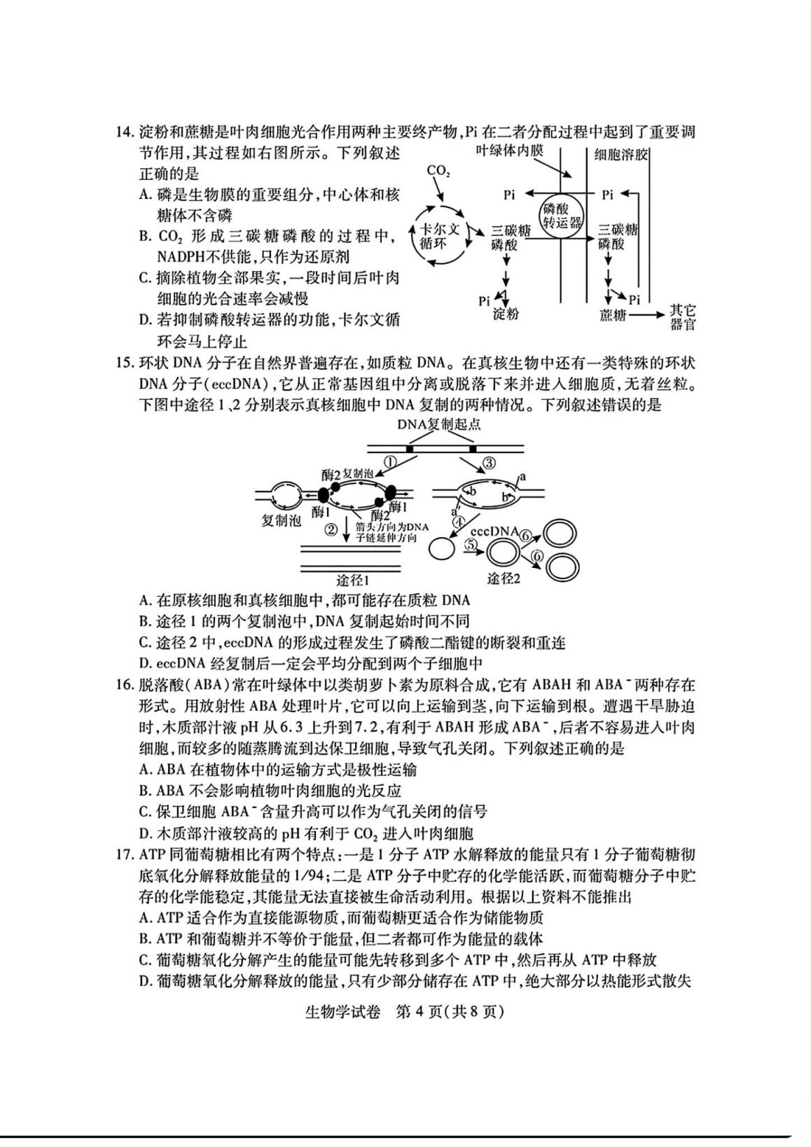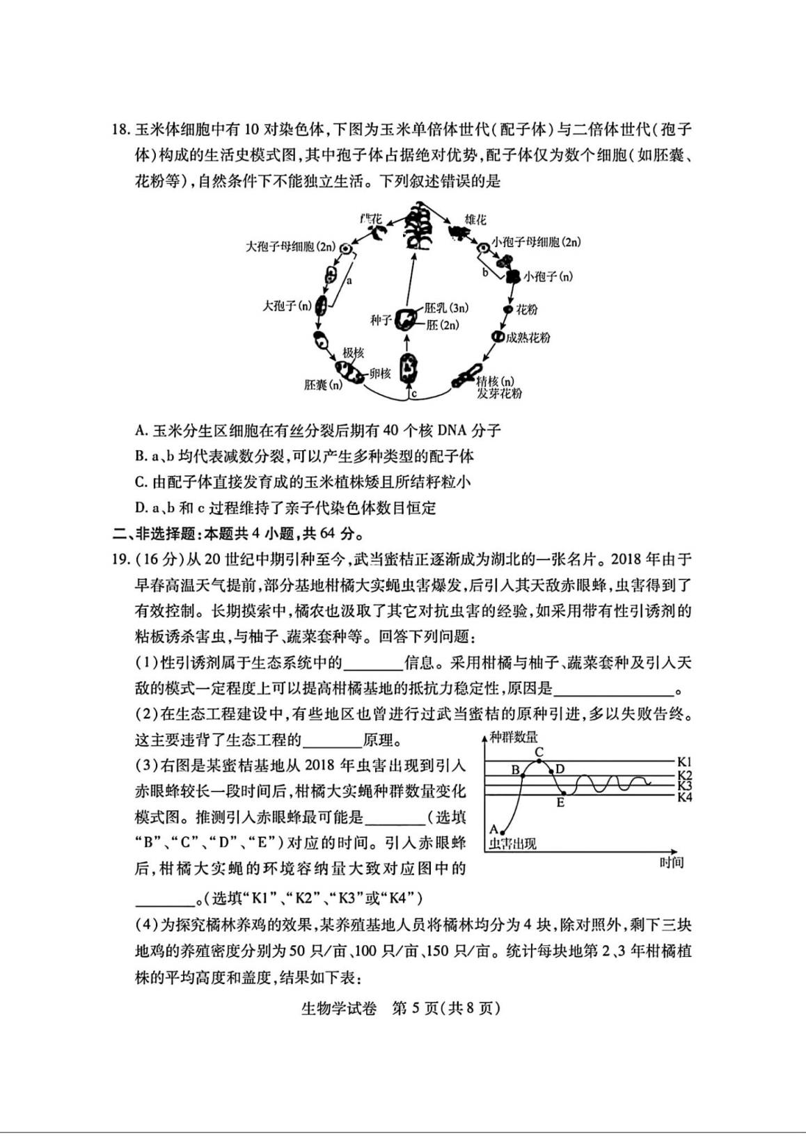 (2)湖北七市州聯(lián)考生物試卷及答案
