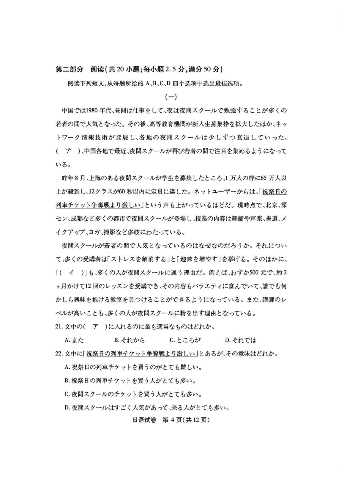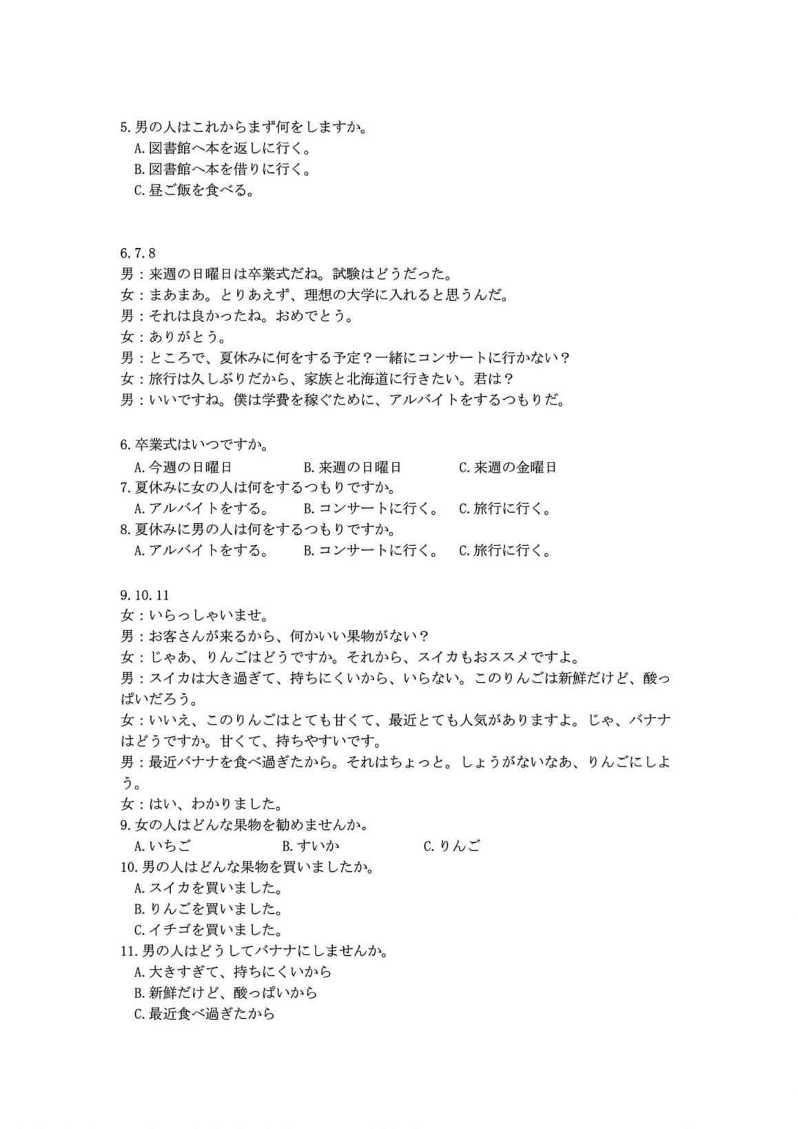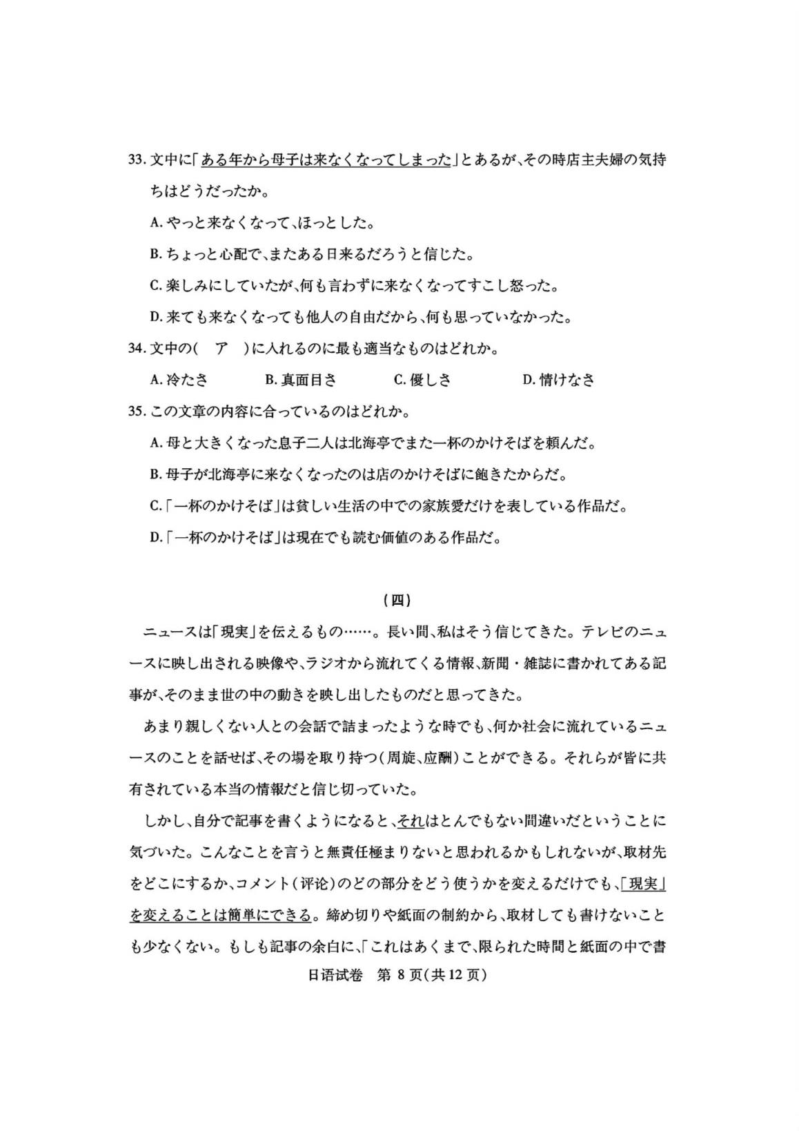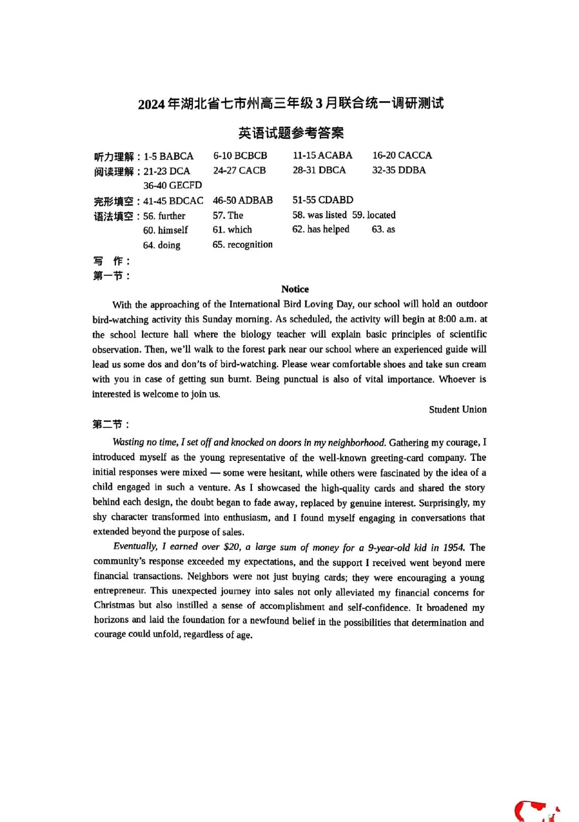 四、湖北省七市州聯(lián)考2024英語/日語試題及答案解析