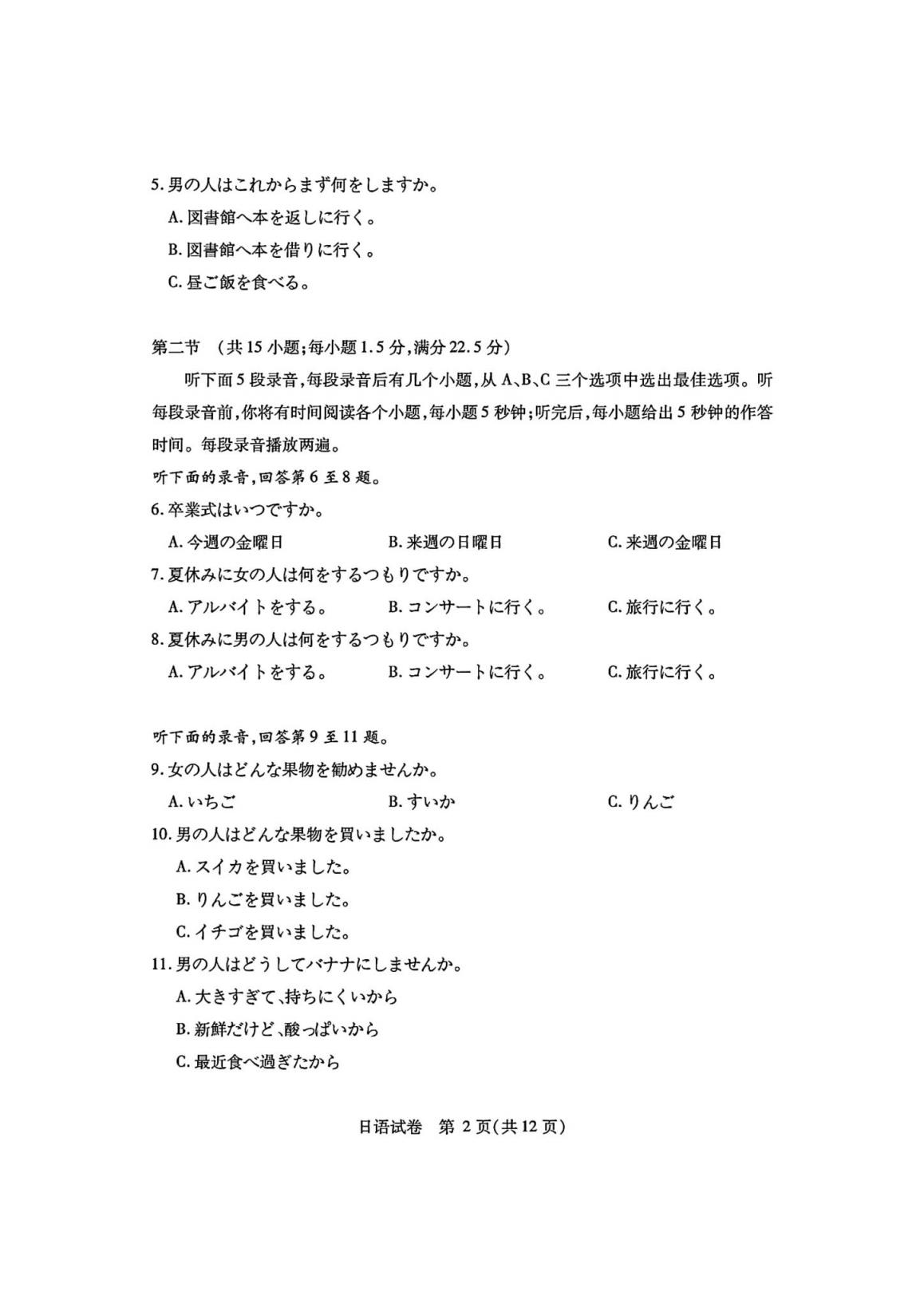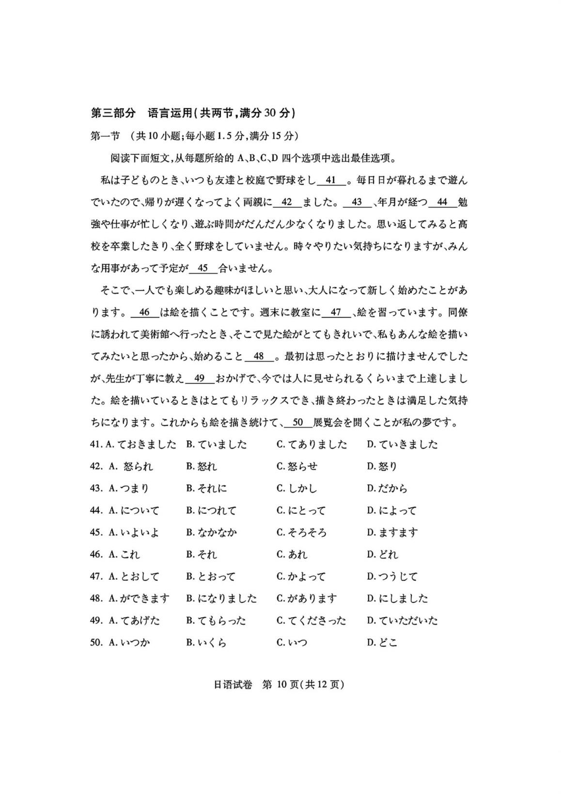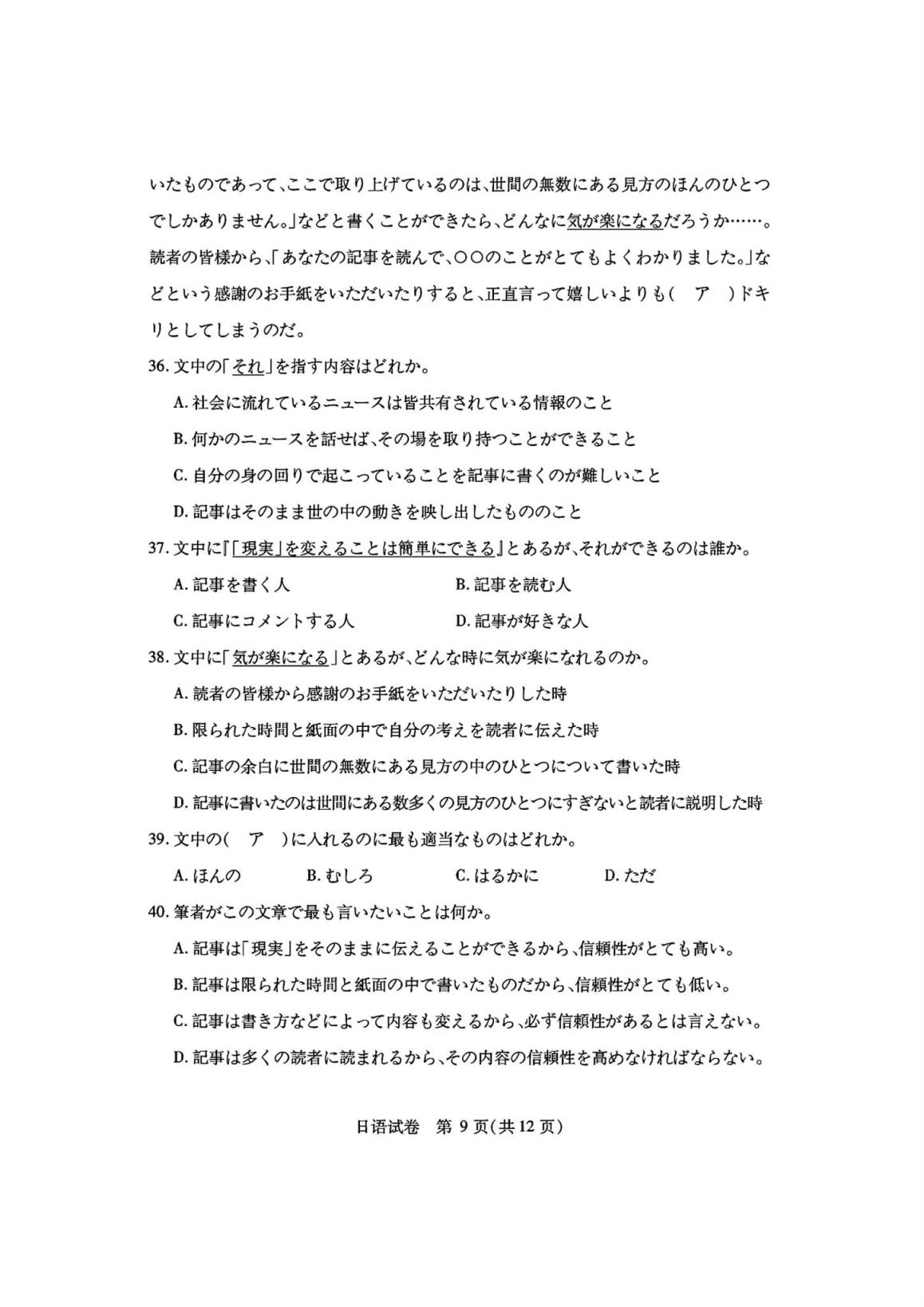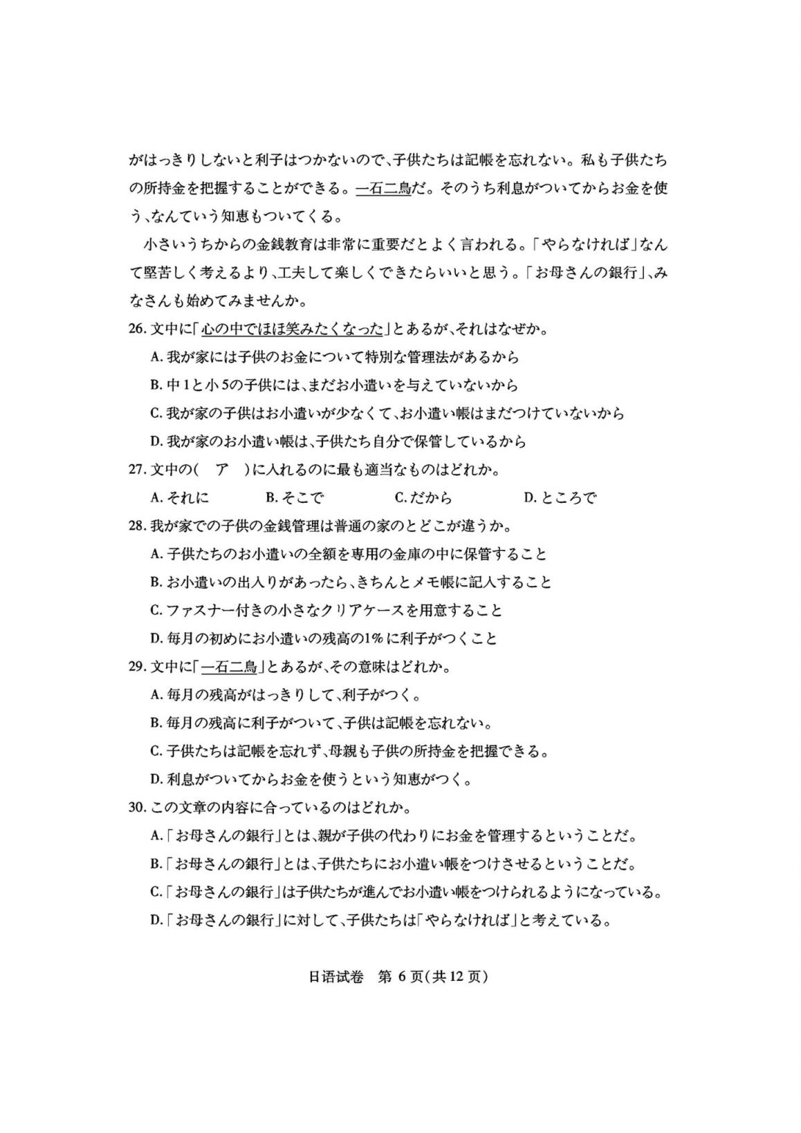 四、湖北省七市州聯(lián)考2024英語/日語試題及答案解析