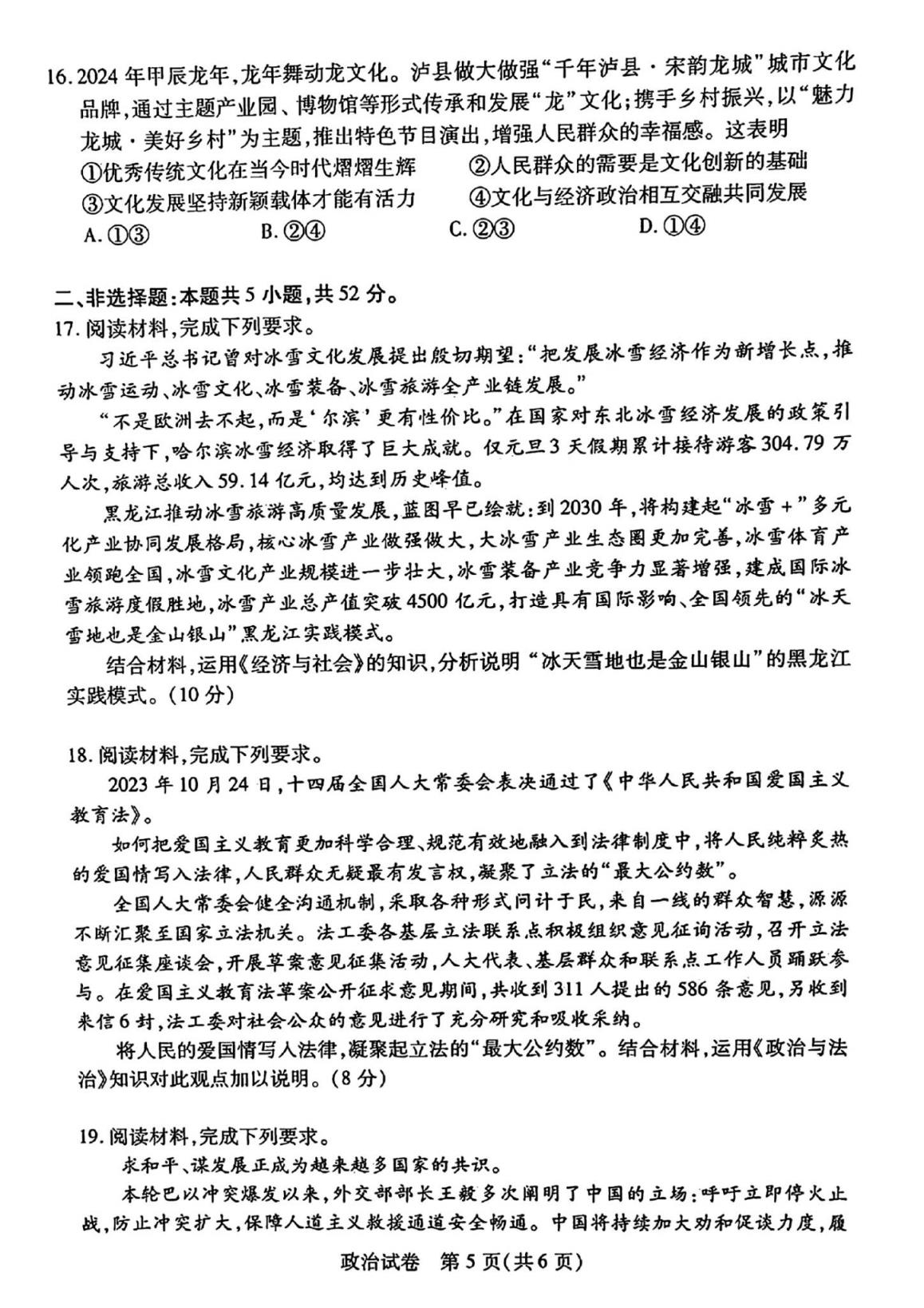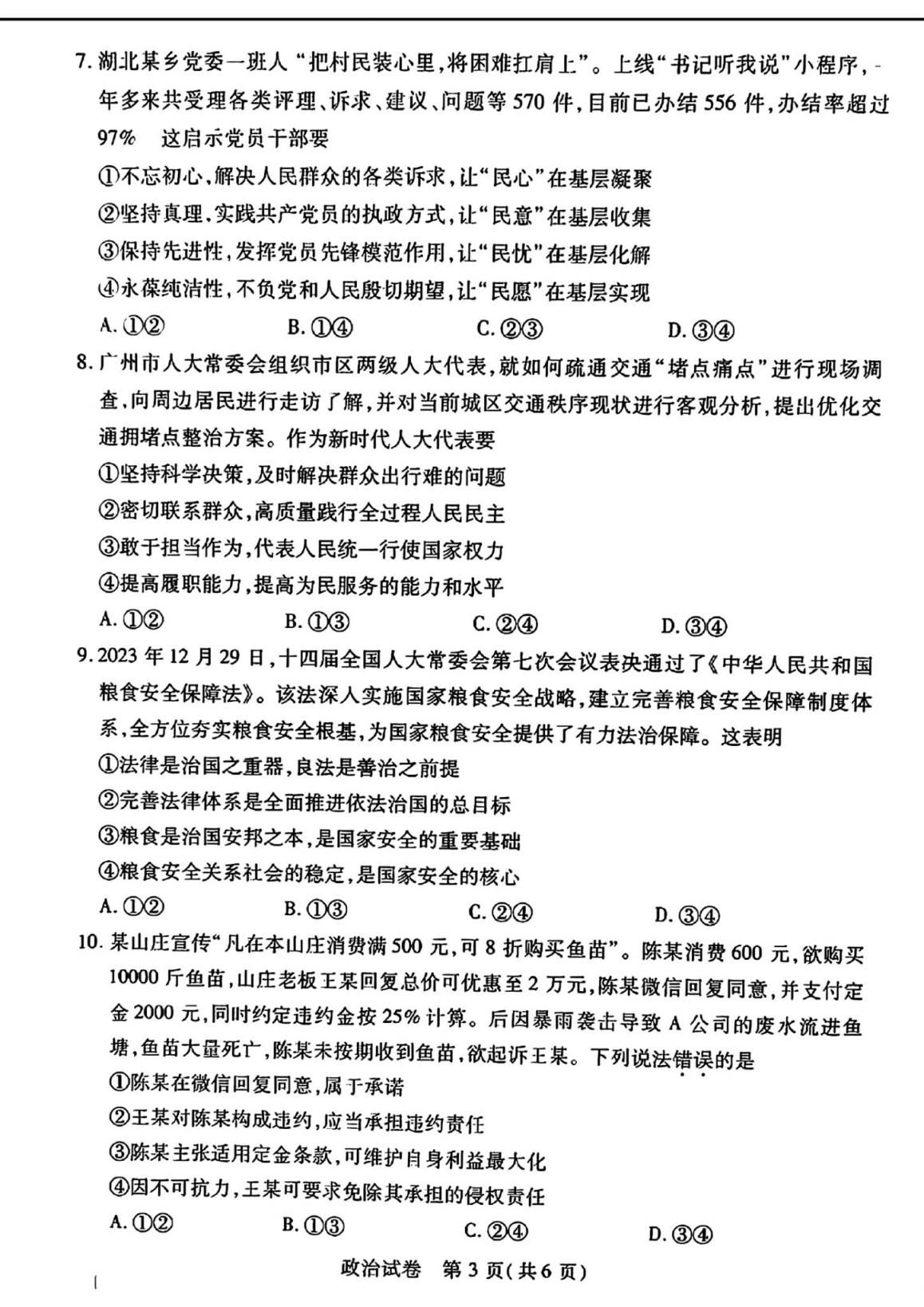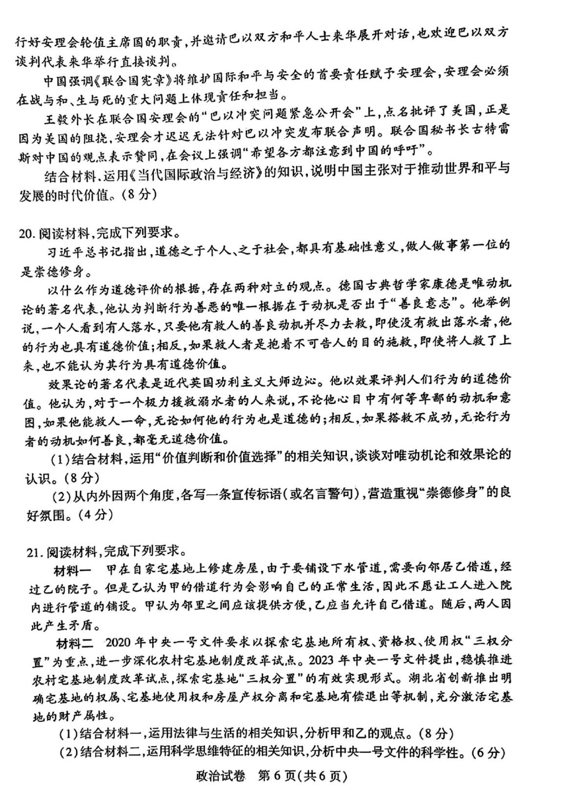 (3)湖北七市州聯(lián)考政治試卷及答案