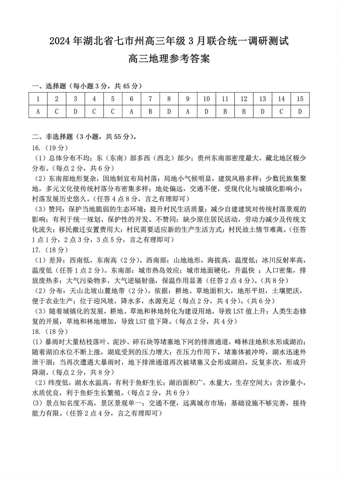 (4)湖北七市州聯(lián)考地理試卷及答案