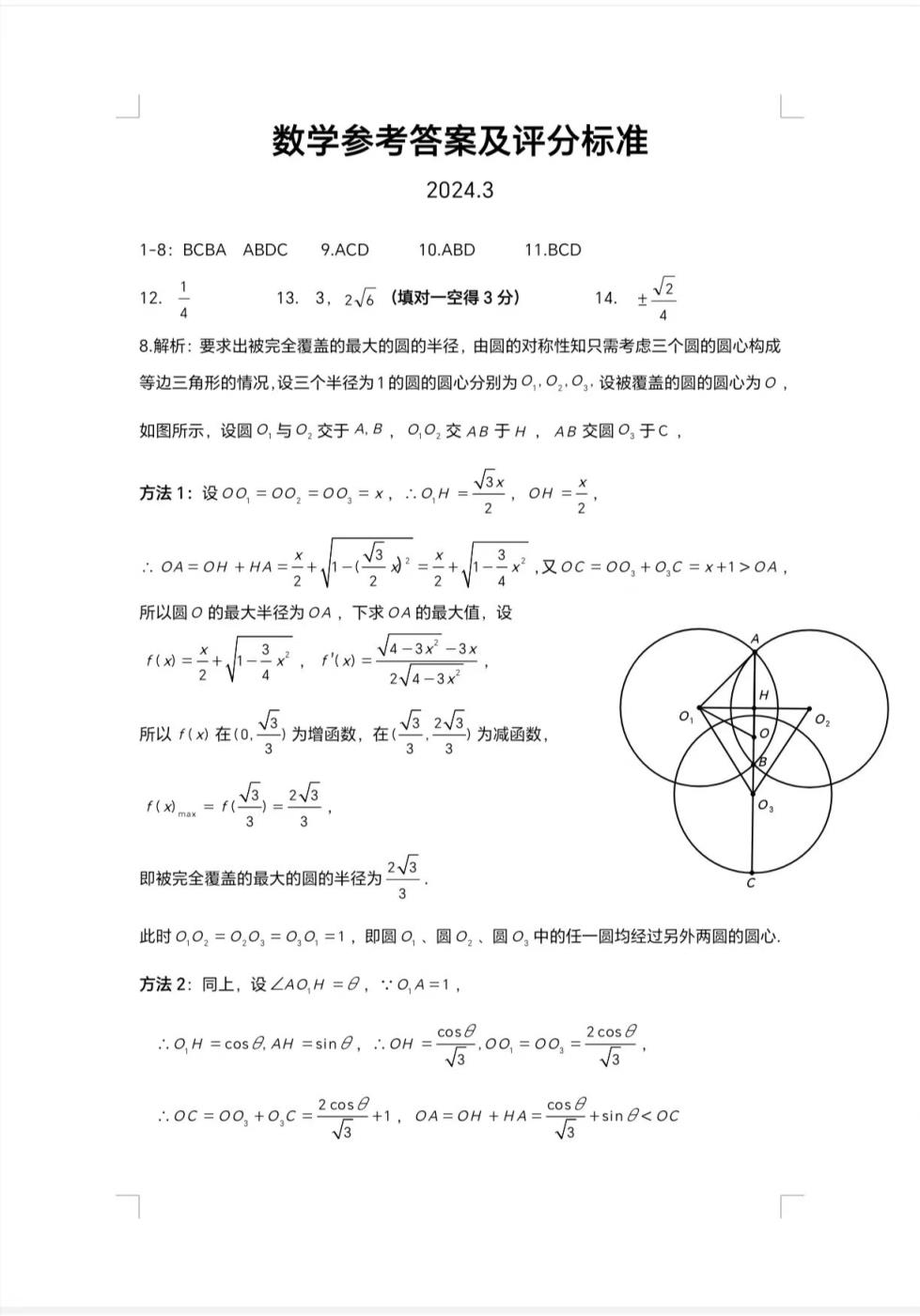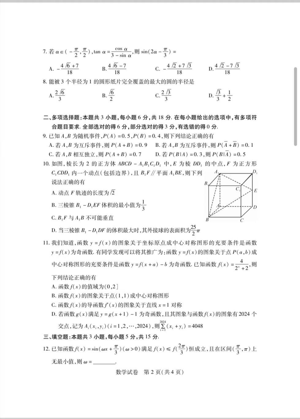 三、湖北省七市州聯(lián)考2024數(shù)學試題及答案解析