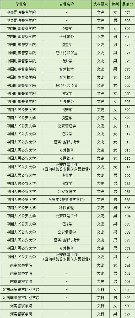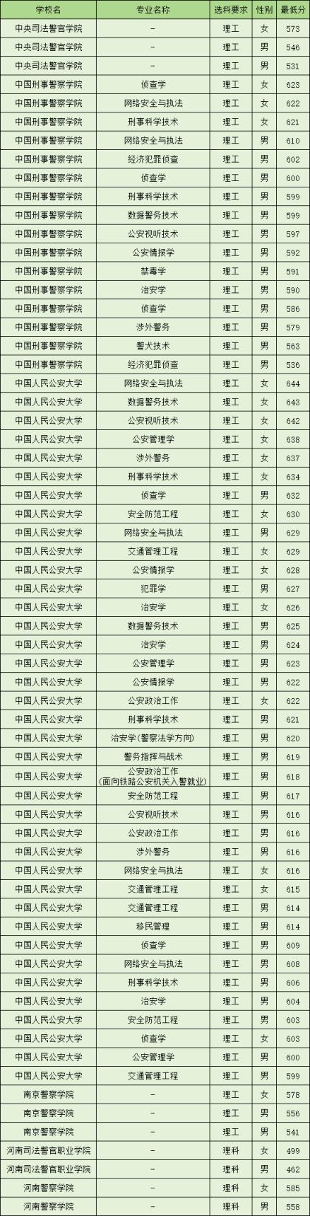 其中,中國人民公安大學(xué)文科最低分578分,理科最低分599分;河南司法警官職業(yè)學(xué)院文科最低分428分,理科最低分462分。本文將整理河南警校提前批分?jǐn)?shù)線匯總。