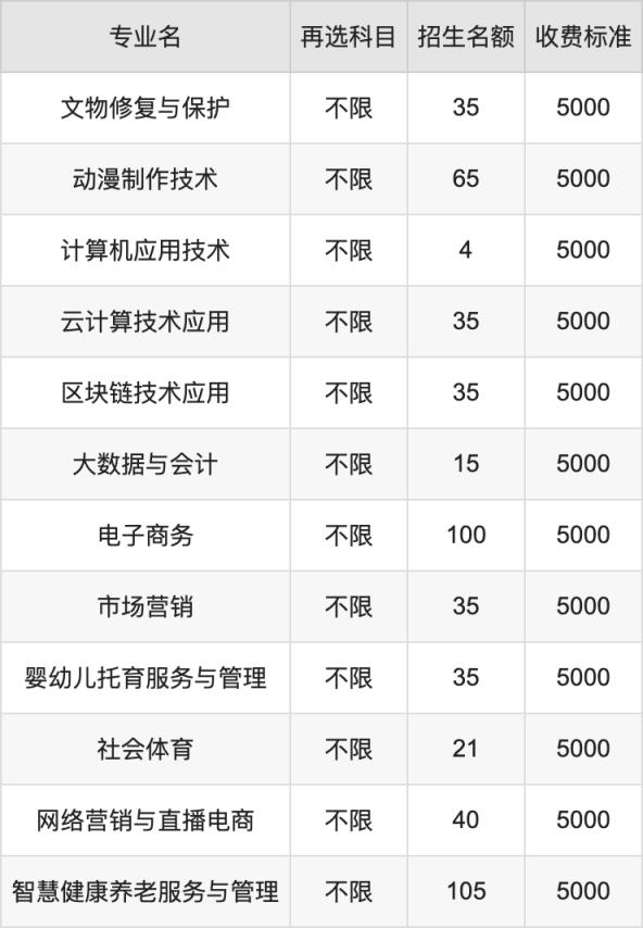 江西陶瓷工藝美術(shù)職業(yè)技術(shù)學(xué)院在歷史組高職??普猩母鱾€(gè)專業(yè),每年的學(xué)費(fèi)是5000元。招生人數(shù)最多的專業(yè)是智慧健康養(yǎng)老服務(wù)與管理,2024年招105人,學(xué)費(fèi)是5000元。