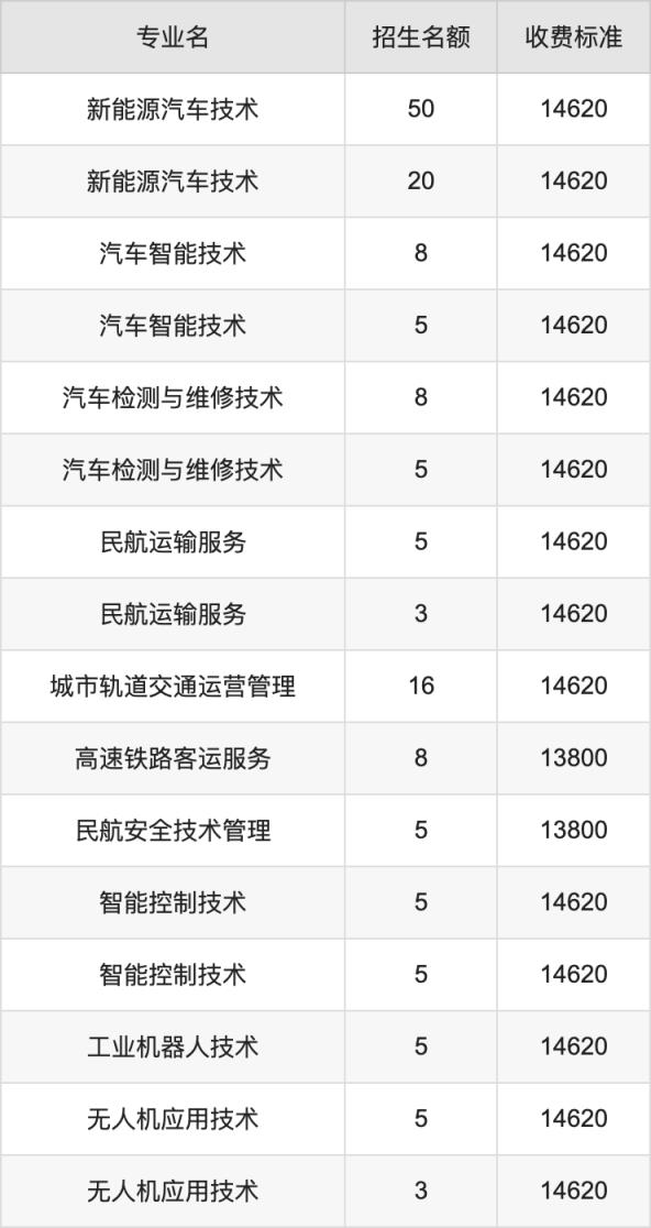 天府新區(qū)信息職業(yè)學院在文科??婆猩母鱾€專業(yè),每年的學費是12800元-14620元。招生人數(shù)最多的專業(yè)是新能源汽車技術(shù),2024年招50人,學費是14620元。