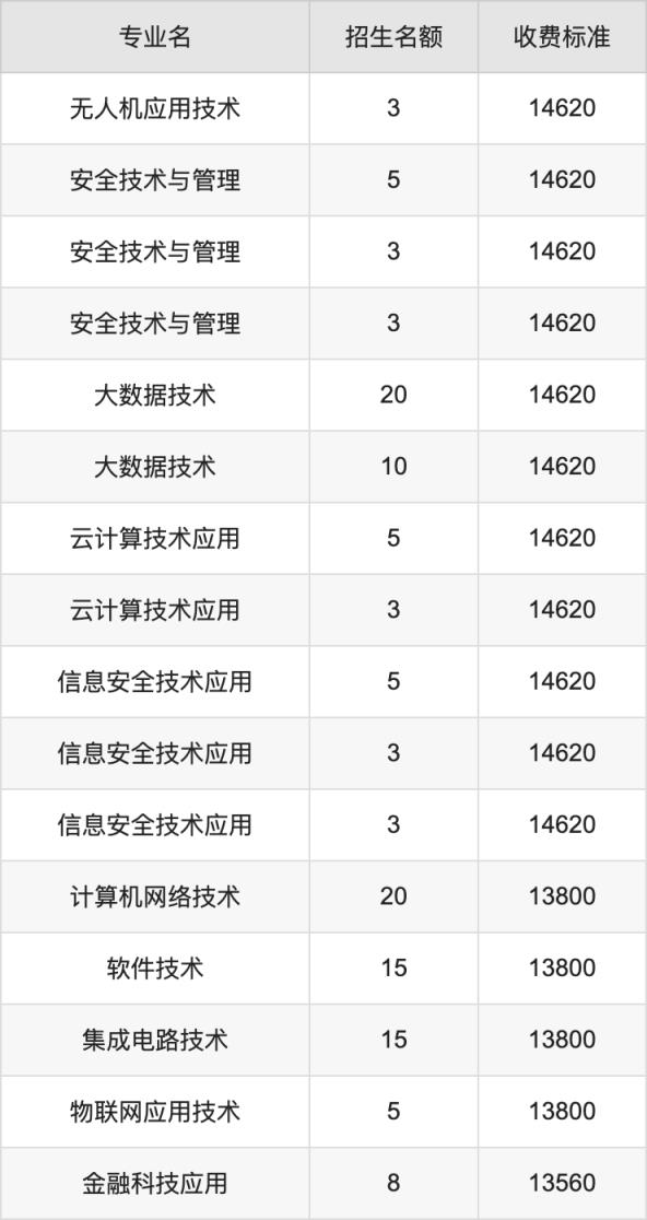 二、天府新區(qū)信息職業(yè)學院各專業(yè)收費標準