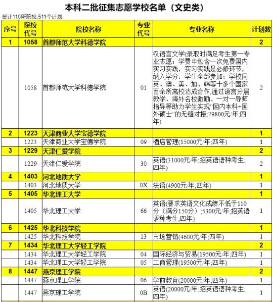 第二批錄取院校本科征集志愿通告(7月28日13:00至29日10:00)