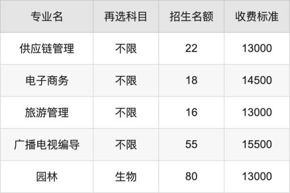 | 本科批 | 歷史 | 旅游管理 | 16 |