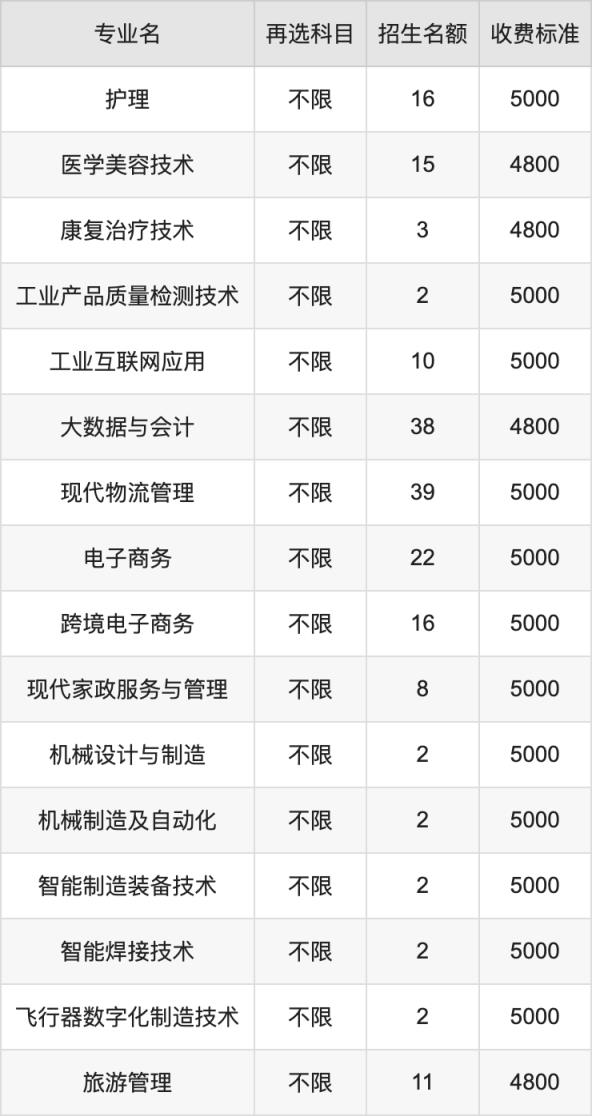 | 高職專科批 | 物理 | 旅游管理 | 40 |