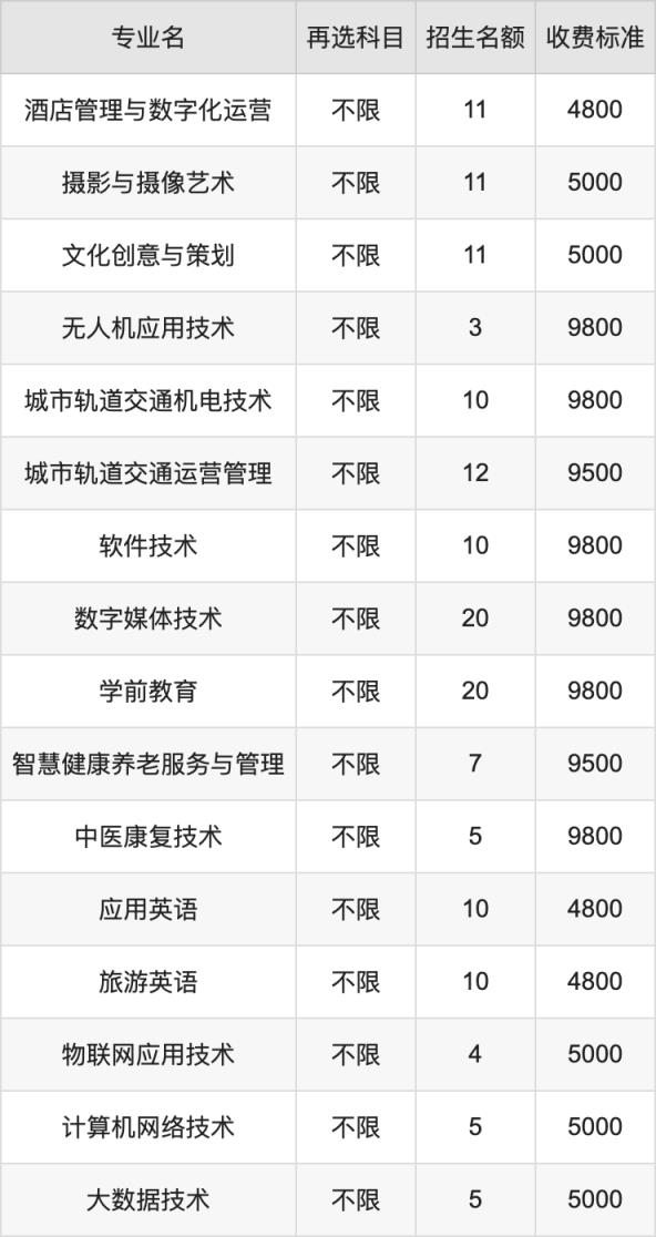 | 高職專科批 | 歷史 | 城市軌道交通機(jī)電技術(shù) | 10 |