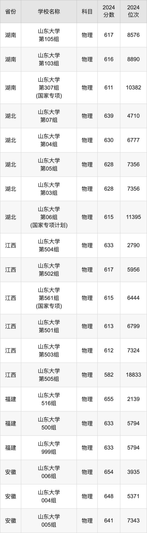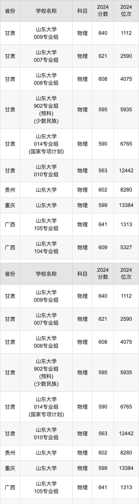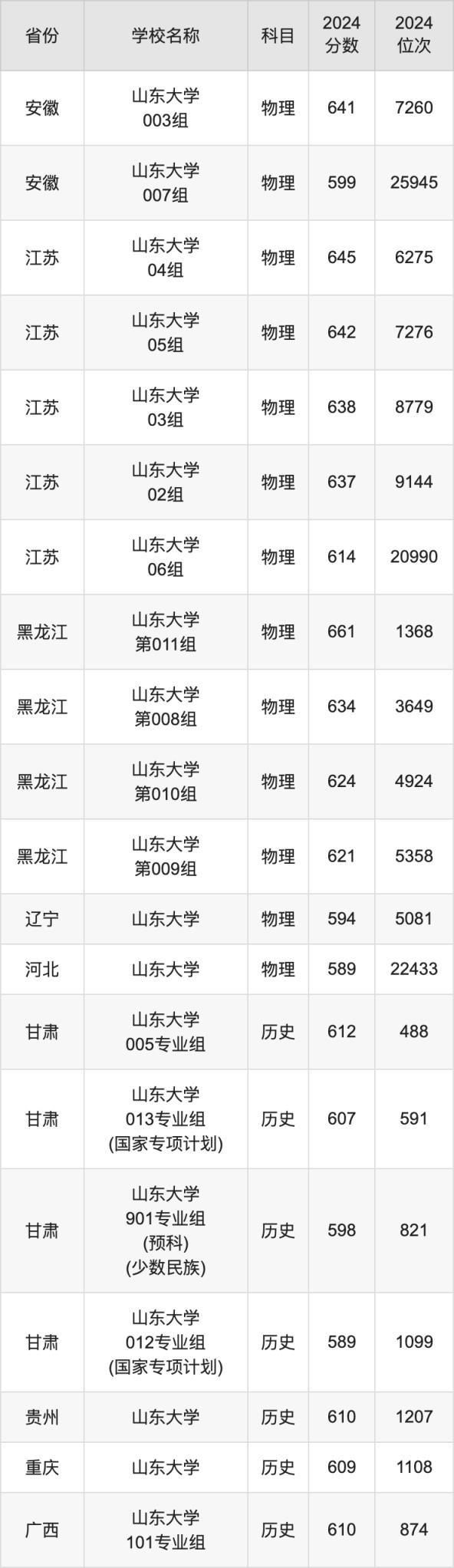 二、山東大學各專業(yè)錄取分數(shù)線