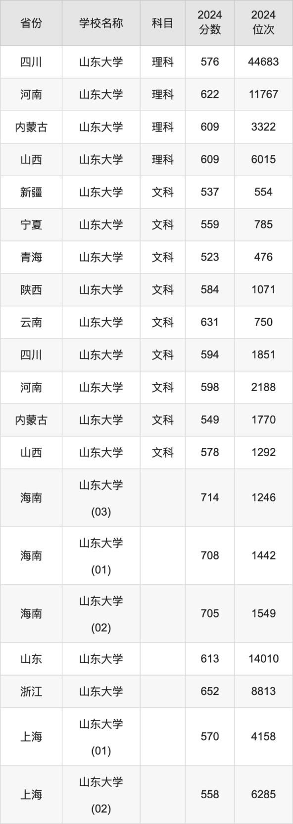 2024山東大學錄取分數(shù)線匯總:全國各省最低多少分能上