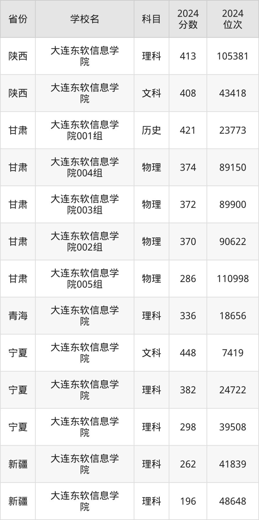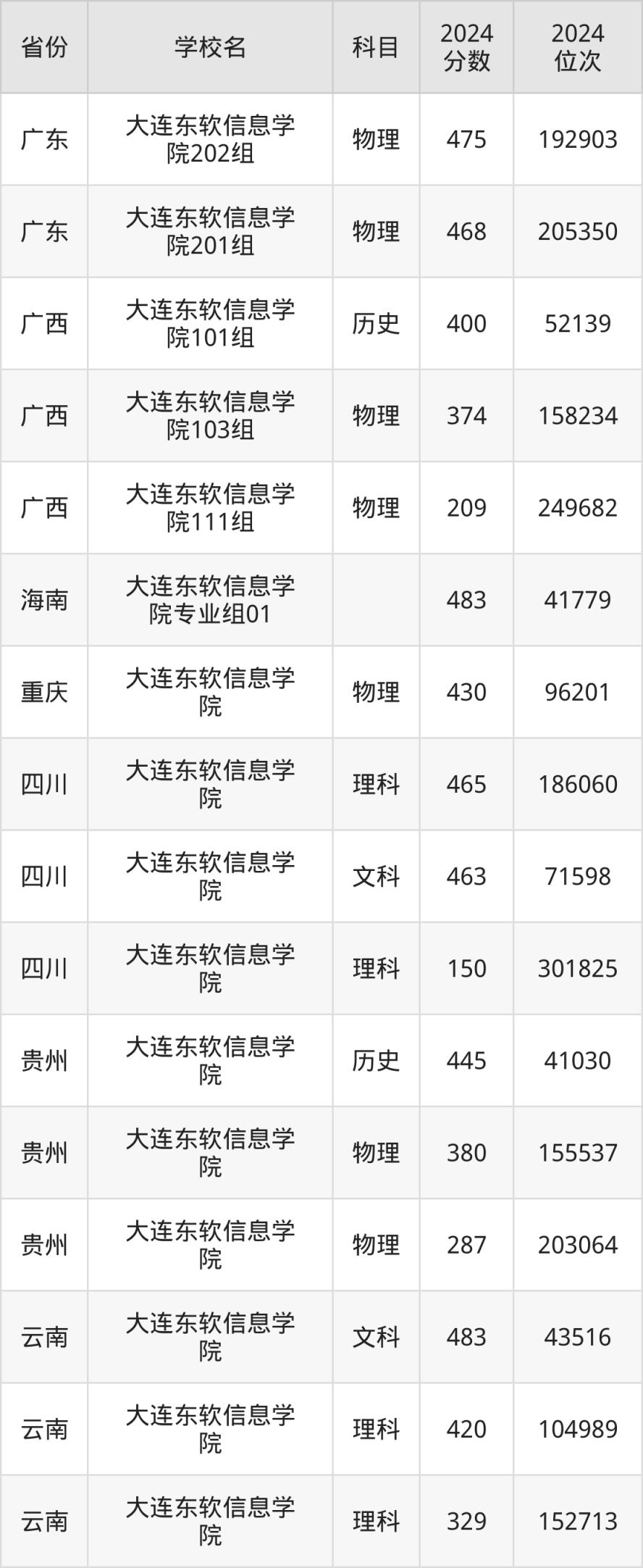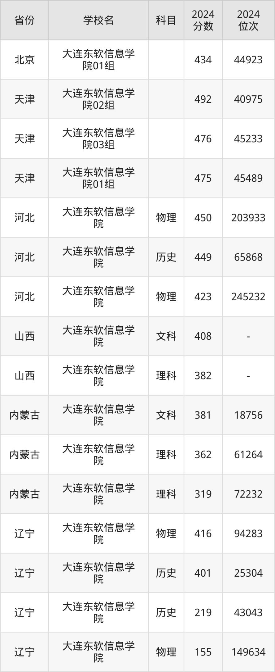 下面是大連東軟信息學(xué)院2024年錄取分數(shù)線一覽表: