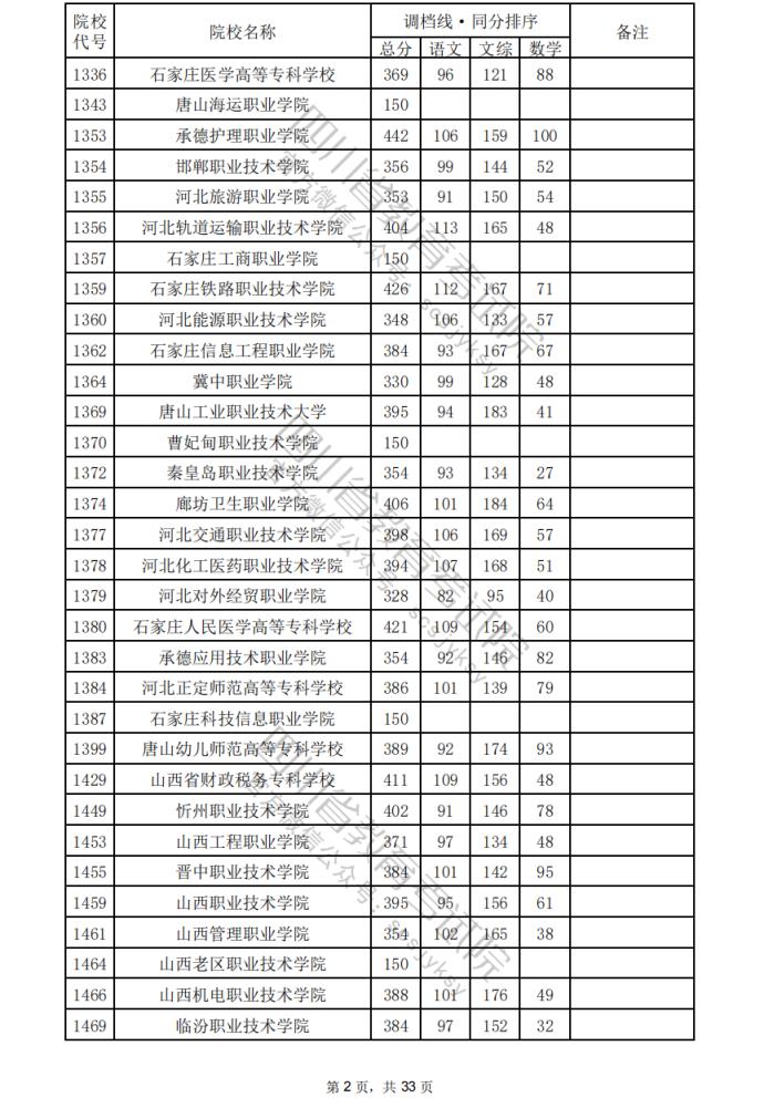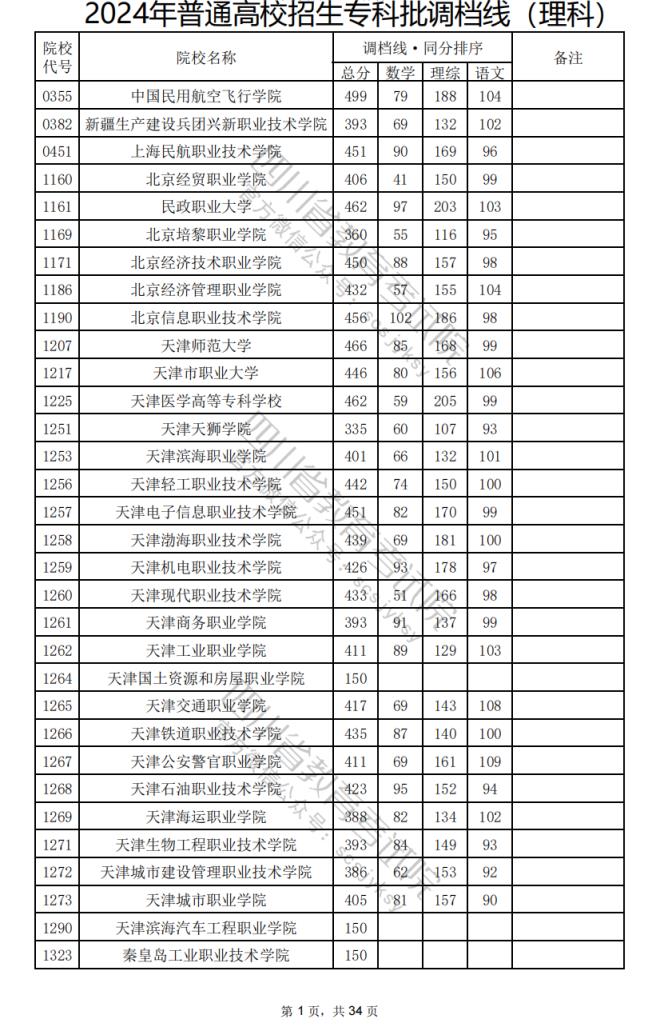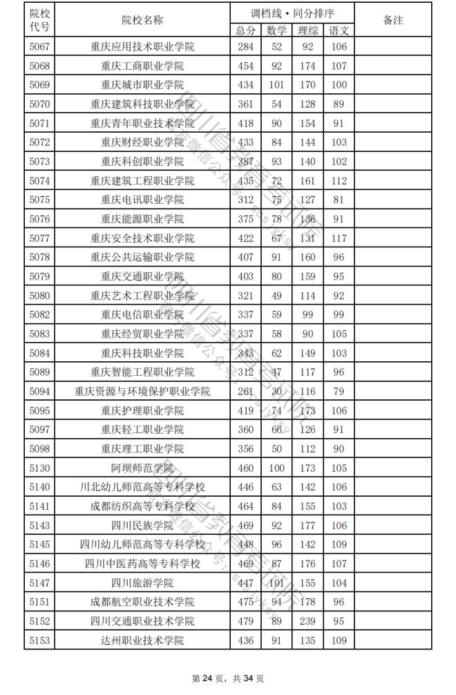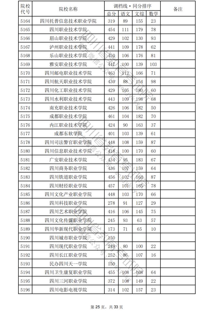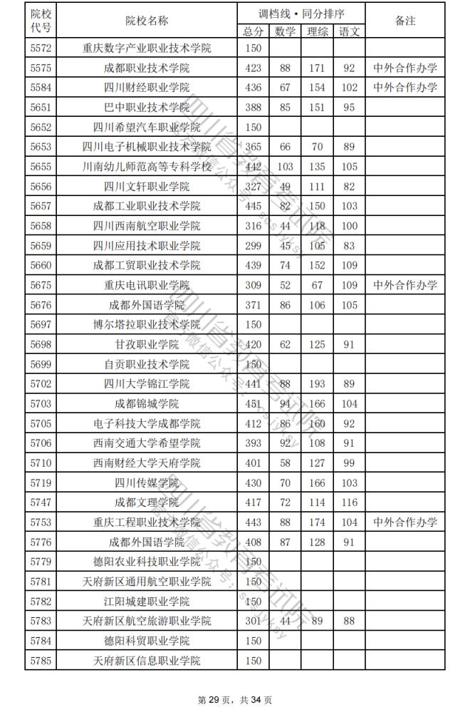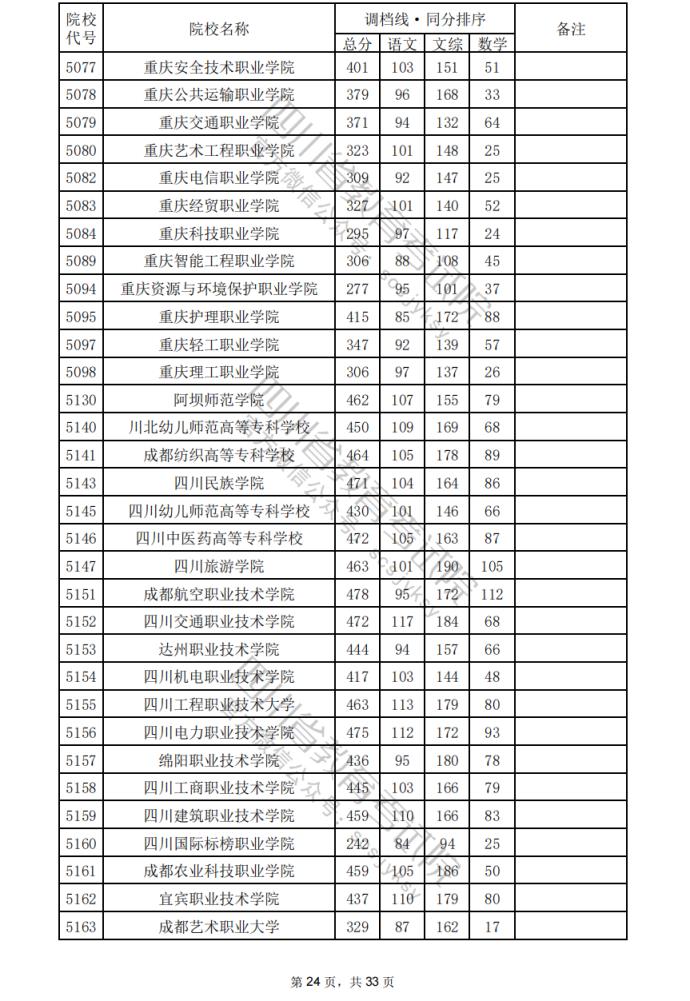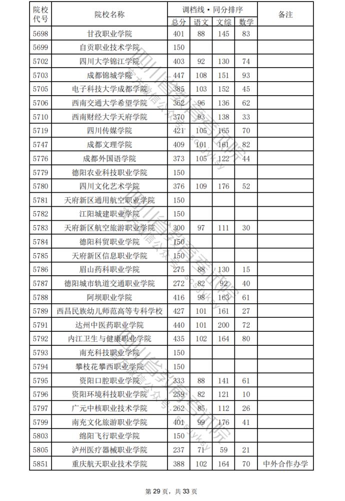 2024年四川??婆盒U{(diào)檔分?jǐn)?shù)線公布(含文理科??婆稒n情況)