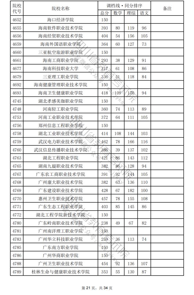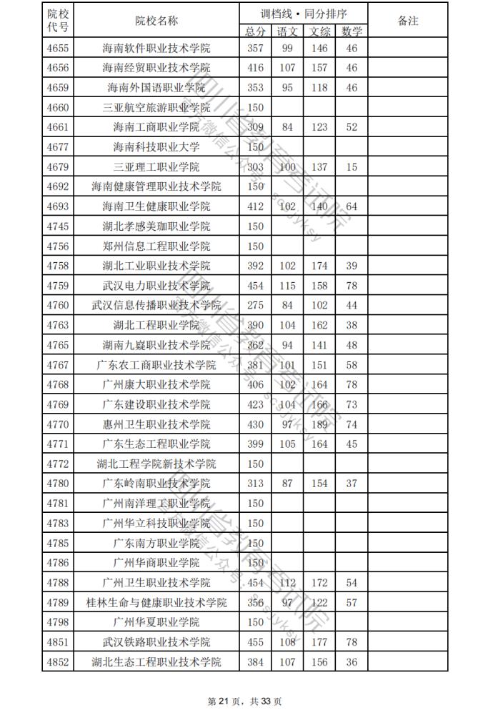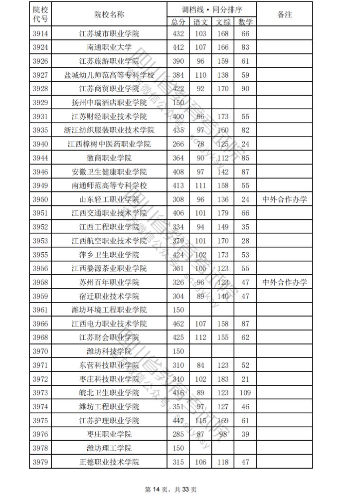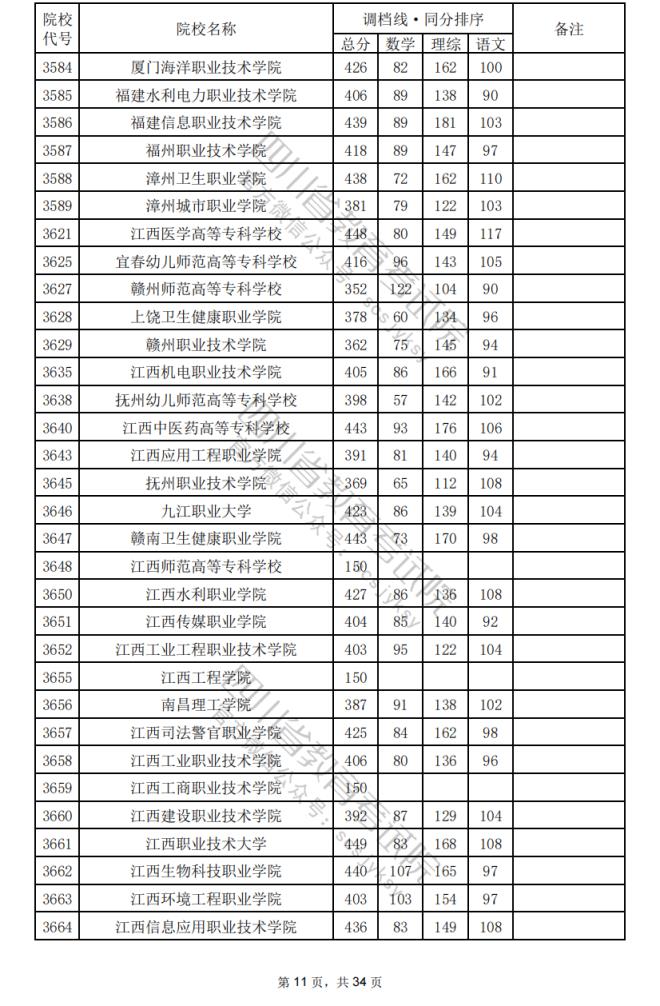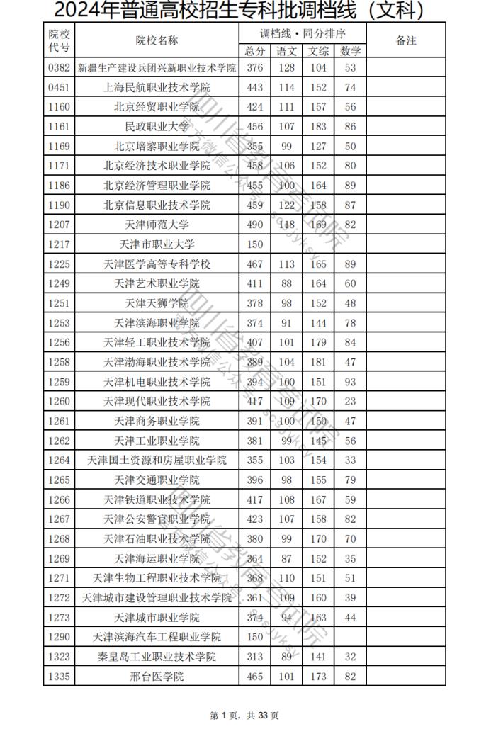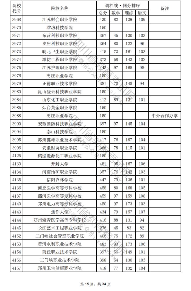 2024年四川??婆盒U{(diào)檔分?jǐn)?shù)線公布(含文理科??婆稒n情況)