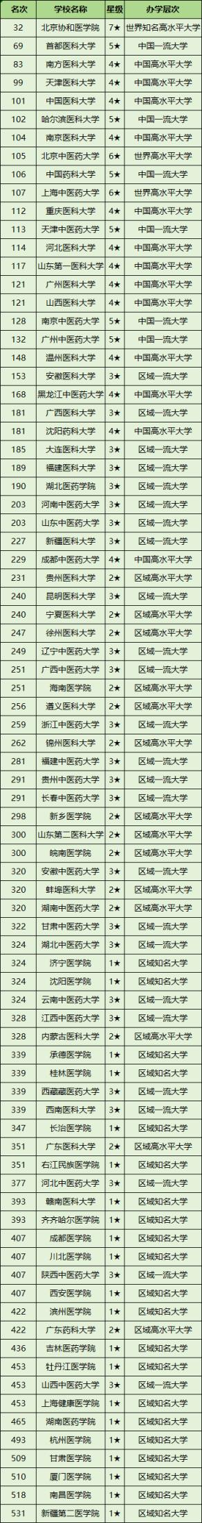 北京協(xié)和醫(yī)學(xué)院、首都醫(yī)科大學(xué)、南方醫(yī)科大學(xué)、天津醫(yī)科大學(xué)、中國(guó)醫(yī)科大學(xué)、哈爾濱醫(yī)科大學(xué)、南京醫(yī)科大學(xué)、北京中醫(yī)藥大學(xué)、中國(guó)藥科大學(xué)、上海中醫(yī)藥大學(xué)、重慶醫(yī)科大學(xué)、天津中醫(yī)藥大學(xué)、河北醫(yī)科大學(xué)、山東第一醫(yī)科大學(xué)、廣州醫(yī)科大學(xué)、山西醫(yī)科大學(xué)、南京中醫(yī)藥大學(xué)、廣州中醫(yī)藥大學(xué)、溫州醫(yī)科大學(xué)、安徽醫(yī)科大學(xué)、黑龍江中醫(yī)藥大學(xué)、廣西醫(yī)科大學(xué)、沈陽(yáng)藥科大學(xué)、大連醫(yī)科大學(xué)、福建醫(yī)科大學(xué)、湖北醫(yī)藥學(xué)院、河南中醫(yī)藥大學(xué)。