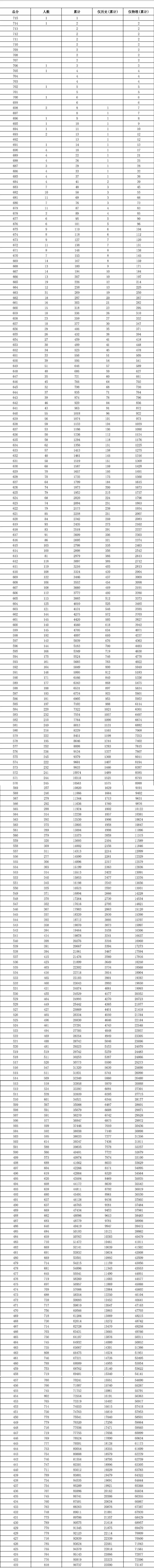 | 排位次 /人數(shù) | 13677 名/人 | 32498 名/人 | 1552 名/人 |