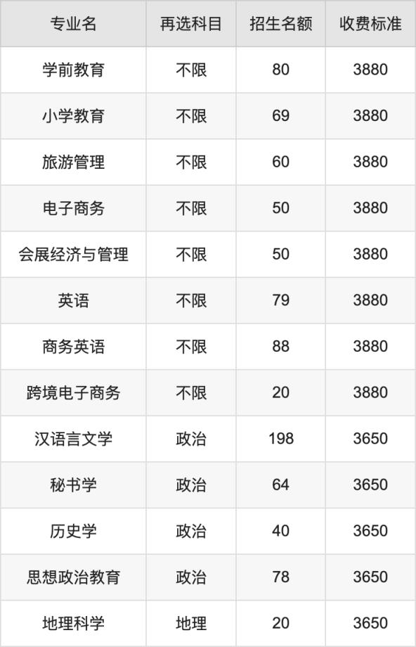 南昌師范學(xué)院在歷史組本科批招生的各個(gè)專業(yè),每年的學(xué)費(fèi)是3650元-3880元。招生人數(shù)最多的專業(yè)是漢語言文學(xué),2024年招198人,學(xué)費(fèi)是3650元。