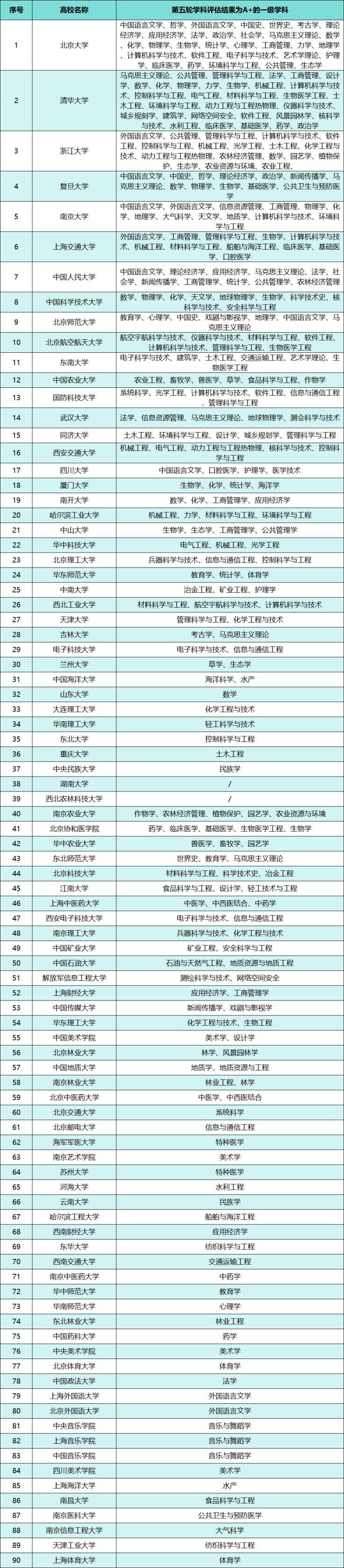 (一)第五輪學(xué)科評(píng)估結(jié)果為A+的大學(xué)及學(xué)科名單