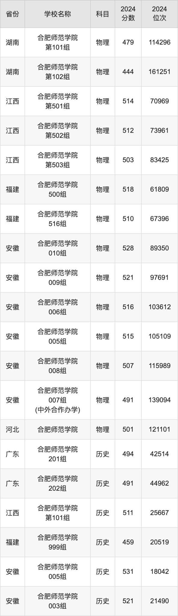 2024合肥師范學(xué)院錄取分?jǐn)?shù)線匯總:全國各省最低多少分能上