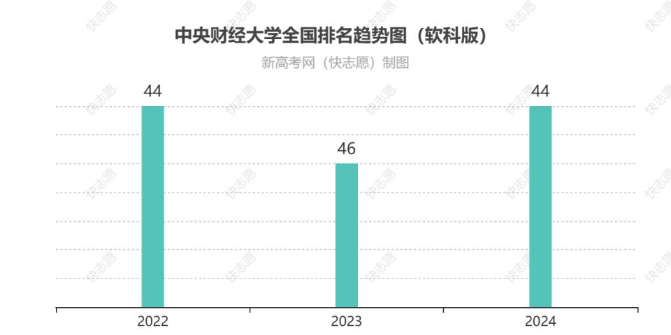 從歷年排名變化趨勢圖可見:中央財經(jīng)大學(xué)在全國排名2024為第44位、2023為第46位、2022為第44位,最近兩年排名呈上升趨勢,綜合實(shí)力有所提高。
