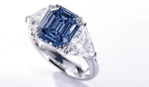 寶格麗藍戒指是由世界上切開成三角形的最大的藍色鉆石構(gòu)成,它的特點是一顆9.87克拉的白色鉆石與另一顆10.95克拉的生動的藍色鉆石相結(jié)合。最終以1570萬美元的價格被拍賣。