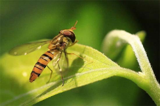 食蚜蠅其實(shí)是很常見的,但是因?yàn)樗耐庑问中嗡泼鄯?,所以很多人?huì)將其當(dāng)成蜜蜂。食蚜蠅的成蟲十分輕盈,以采食花蜜為生,但是它的幼蟲和蛆很像,總是在葉片上面蠕動(dòng),很多人會(huì)將其當(dāng)成害蟲,但是實(shí)際上它們是靠吃蚜蟲之類的害蟲存活的。